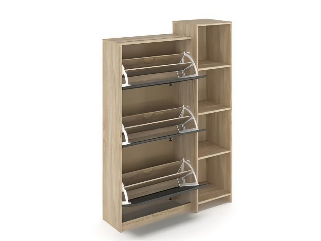 Botník PIZZO výklopný třídveřový s regálem dub sonoma