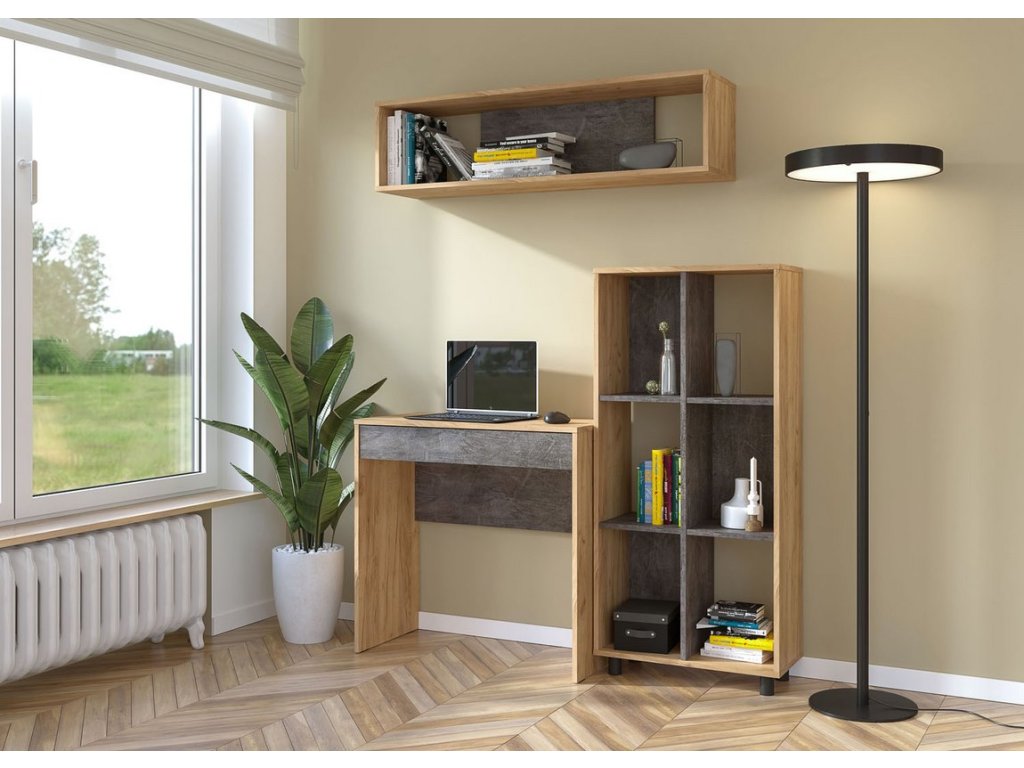 Botník se zásuvkami CALEB dub kraft zlatý/tmavý kámen
