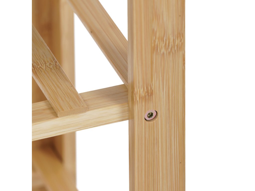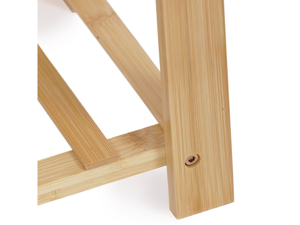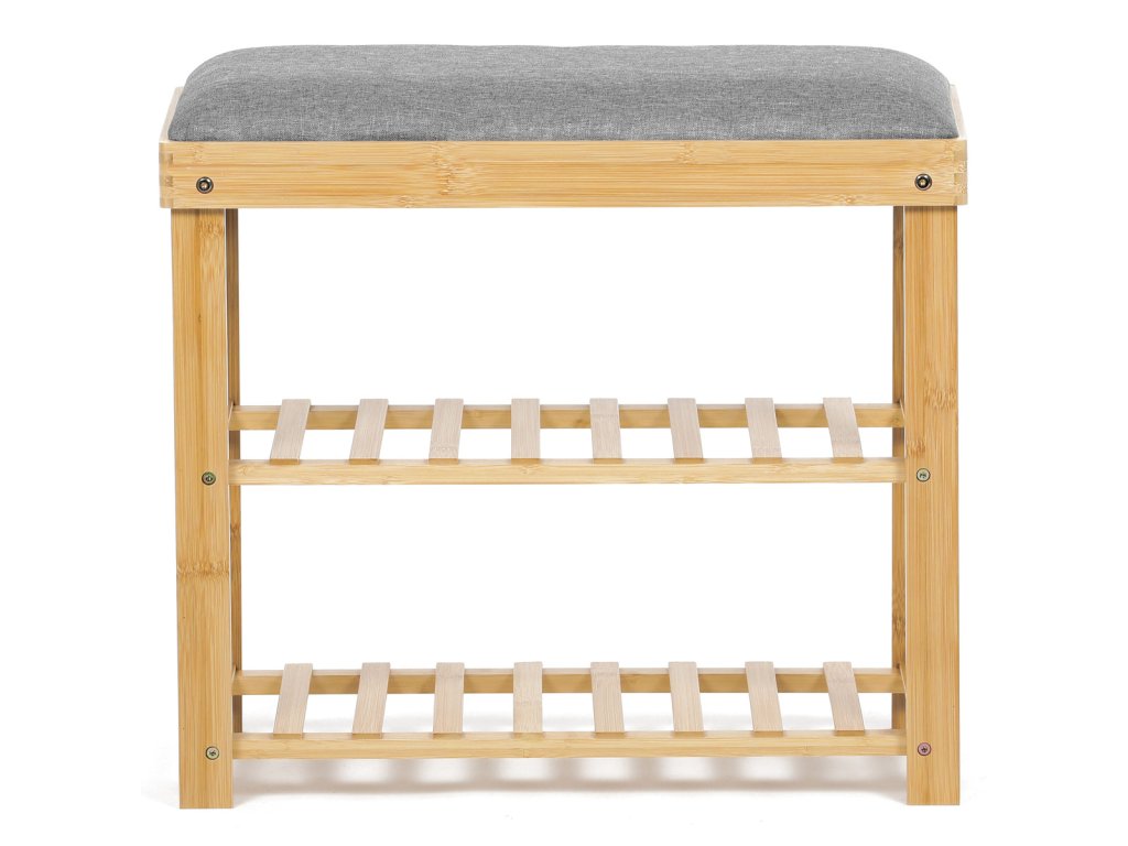 Botník / taburet, 2 police, masiv bambus, přírodní odstín, šedá látka