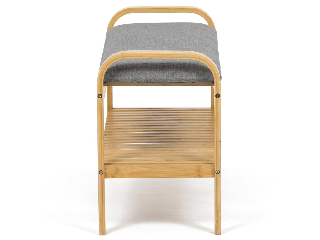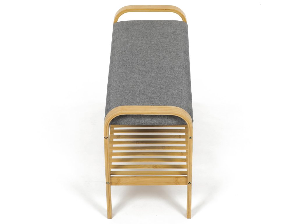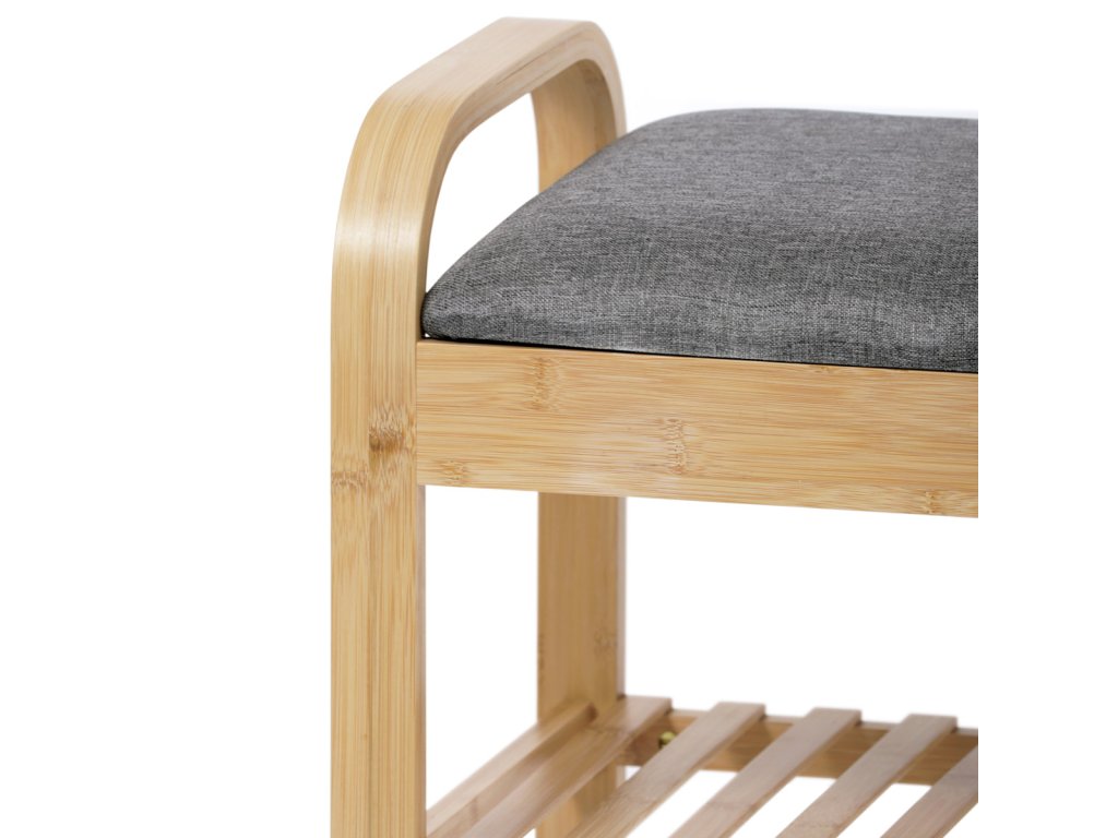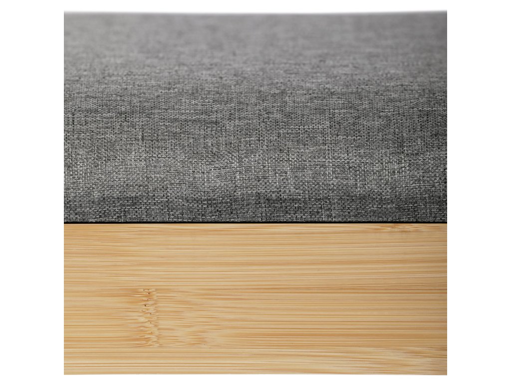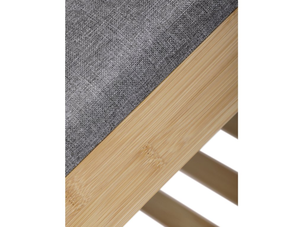 Botník / taburet, police, masiv bambus, přírodní odstín, šedá látka