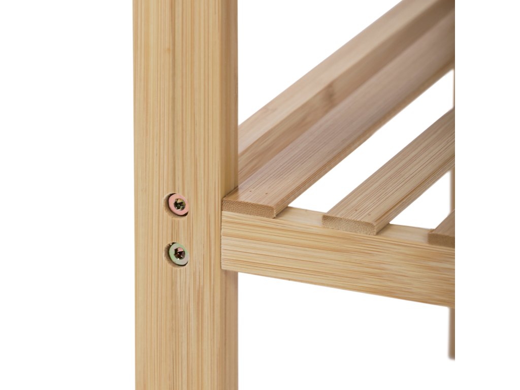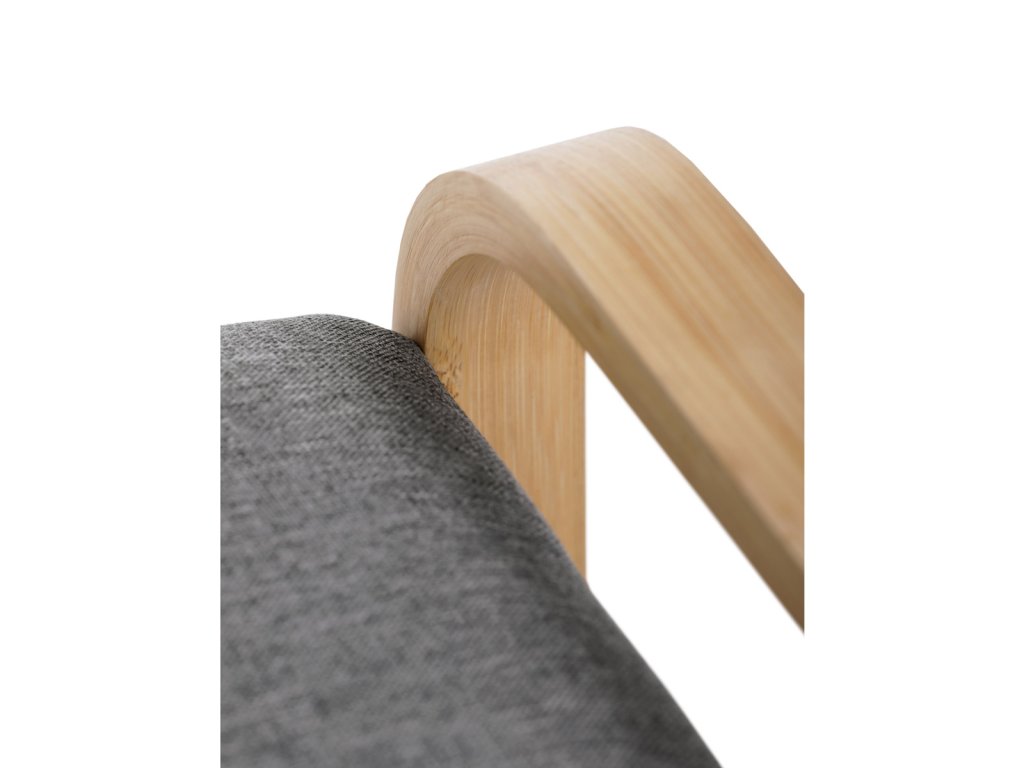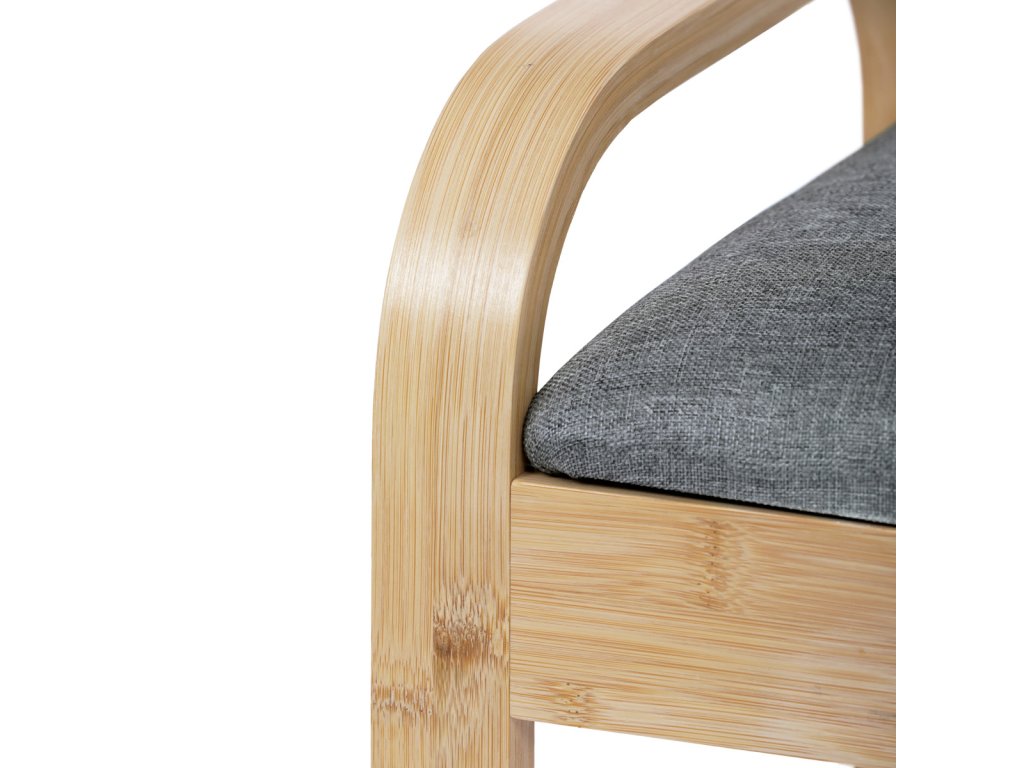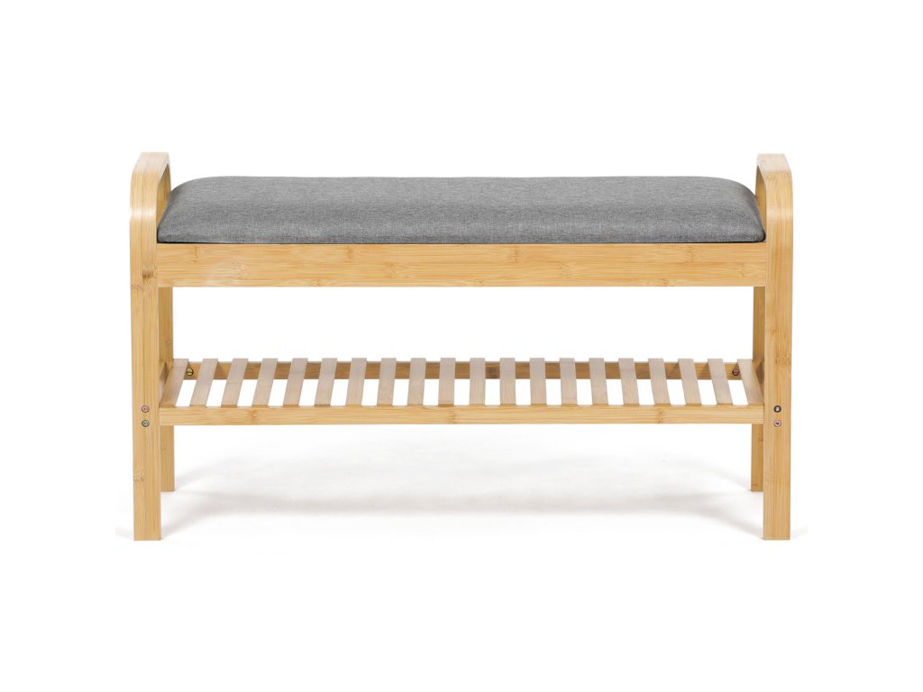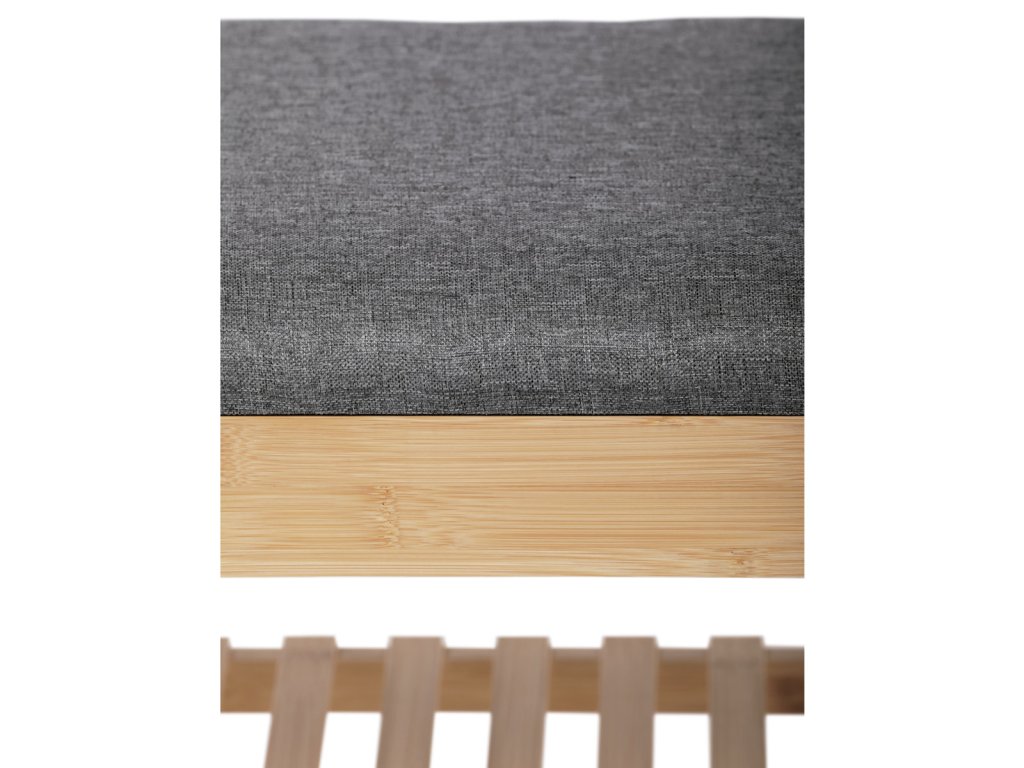 Botník / taburet, police, masiv bambus, přírodní odstín, šedá látka