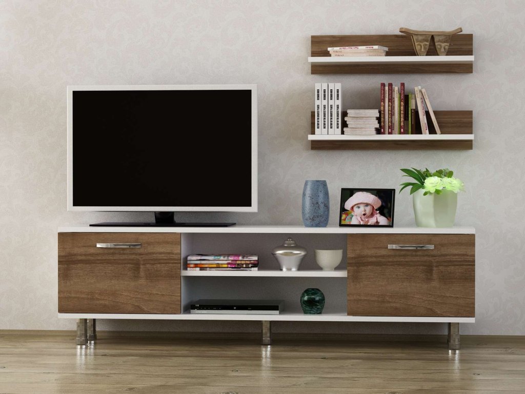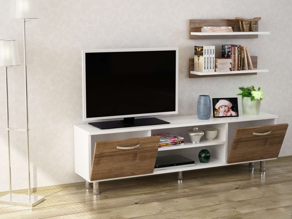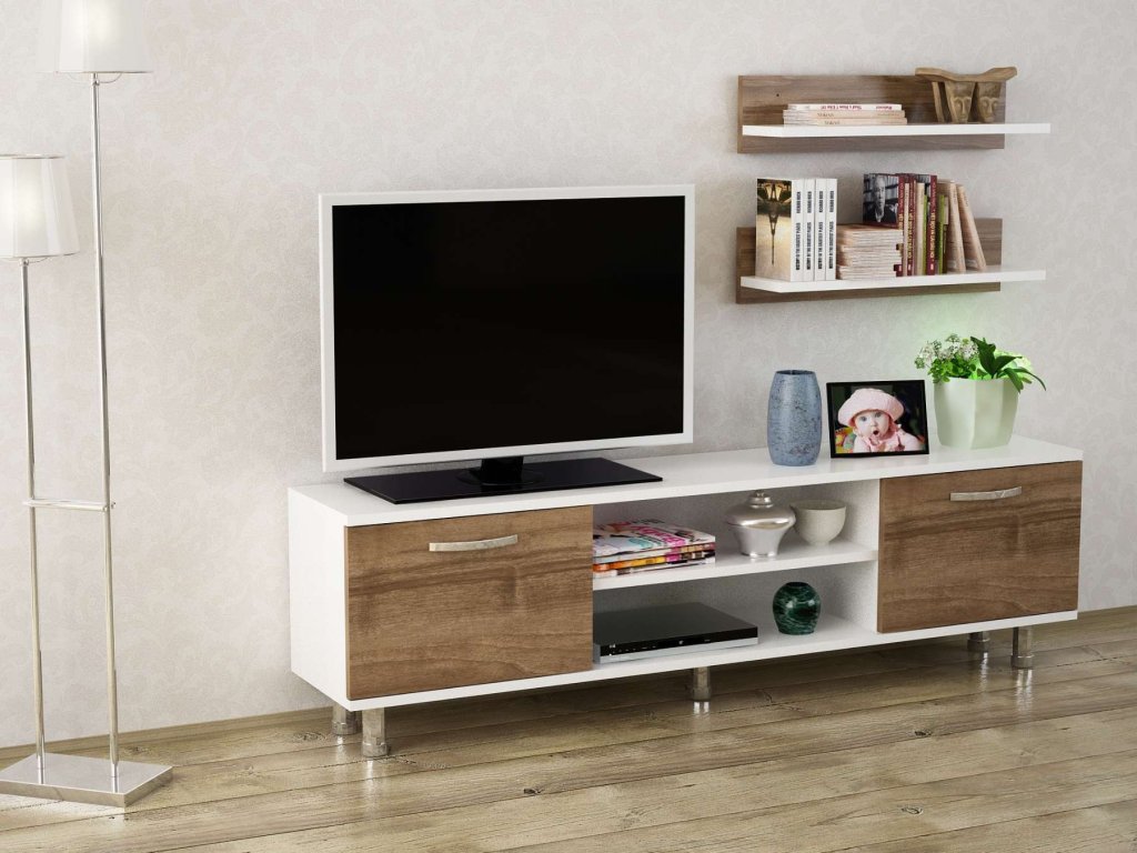 BALSA obývací stěna, bílá/ořech