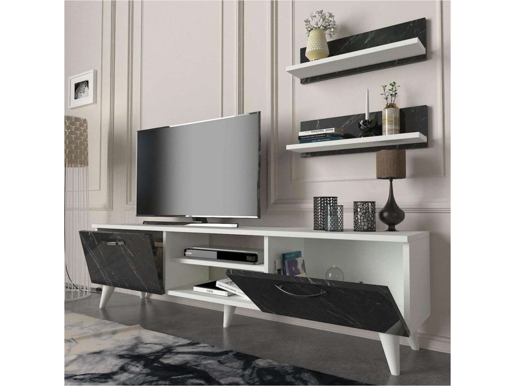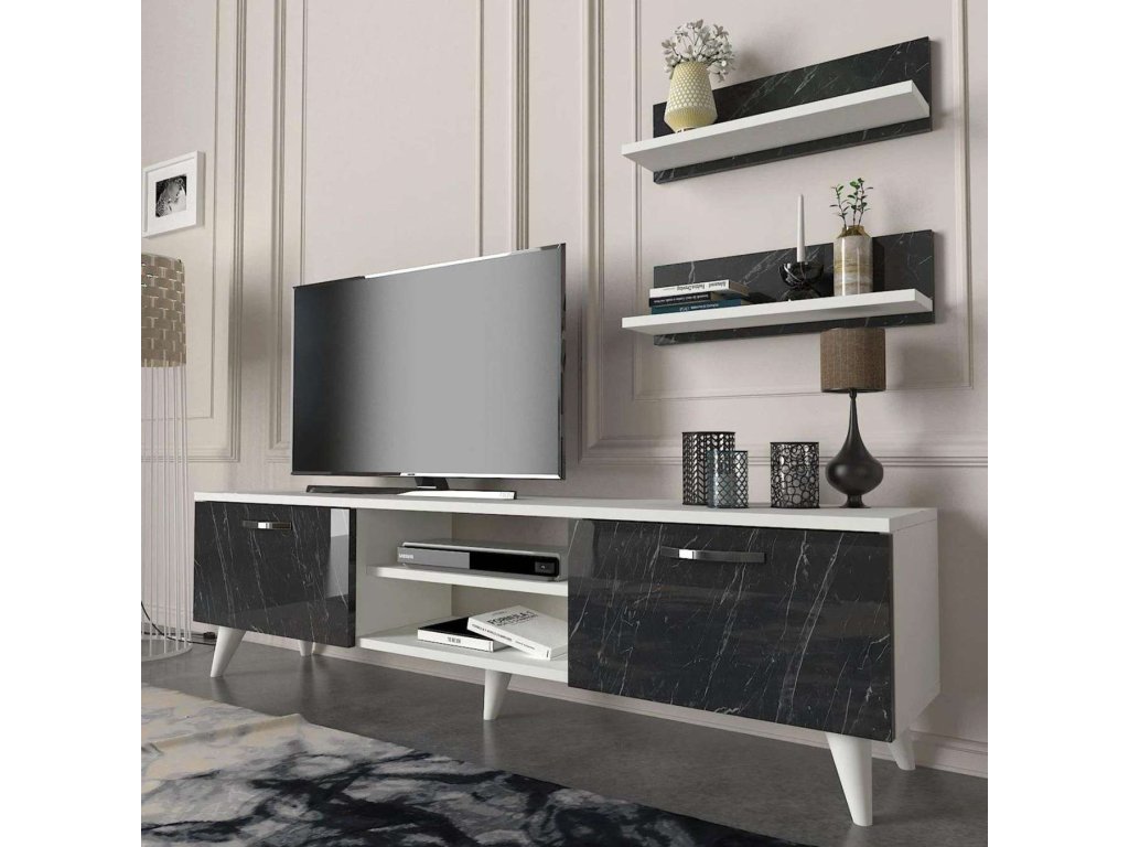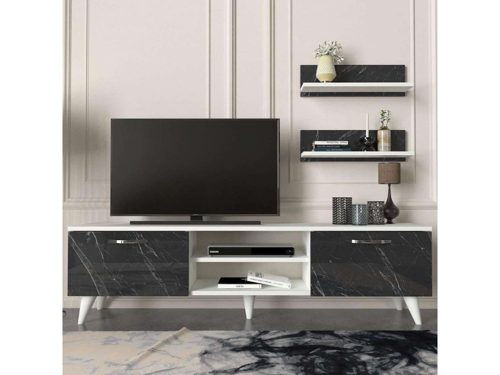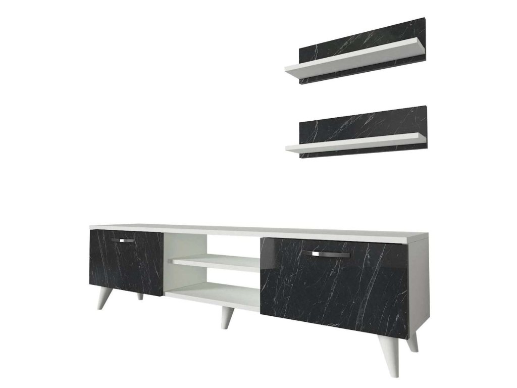 BEALTE luxusní obývací stěna, bílá/černý mramor