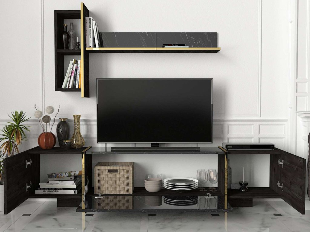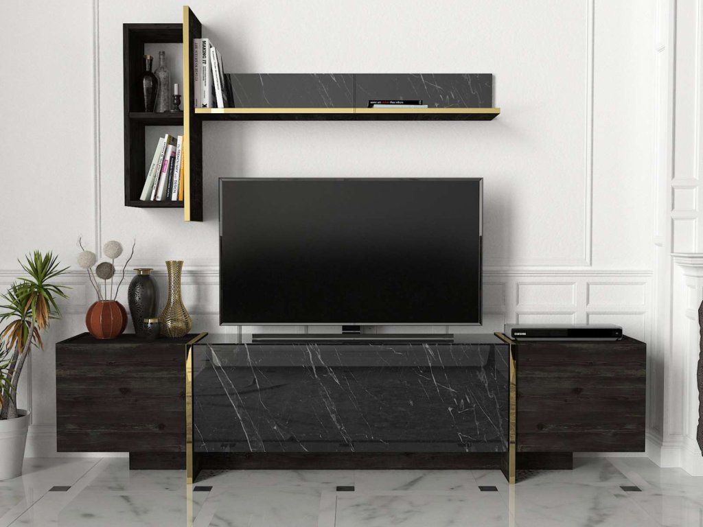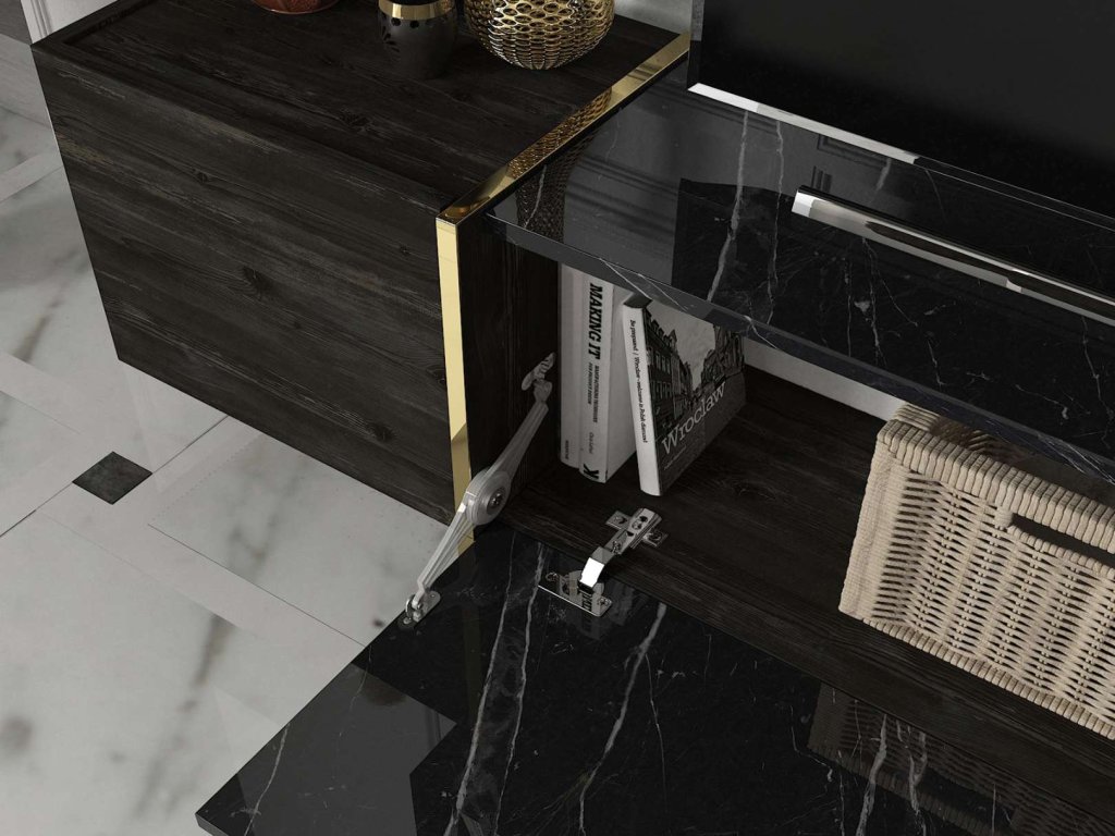 BURNABY luxusní obývací stěna, rehab/černý mramor