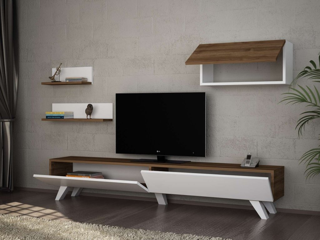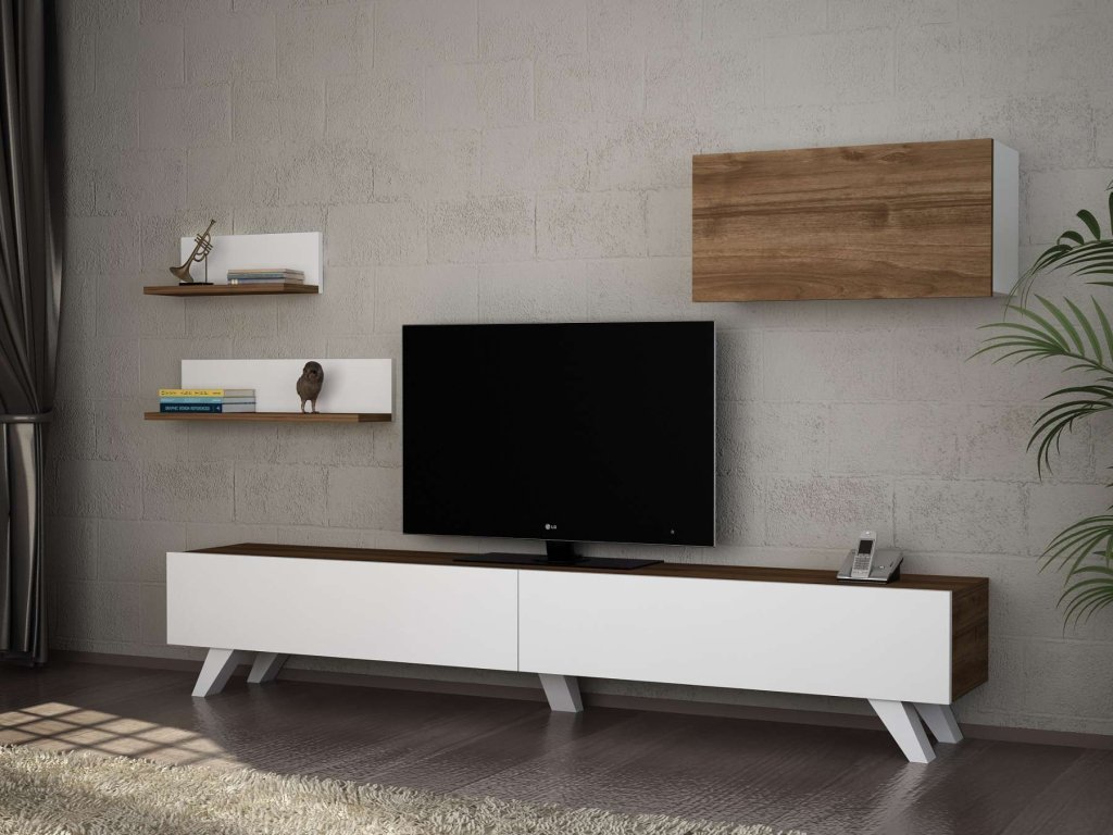 KASAI obývací stěna, bílá/ořech