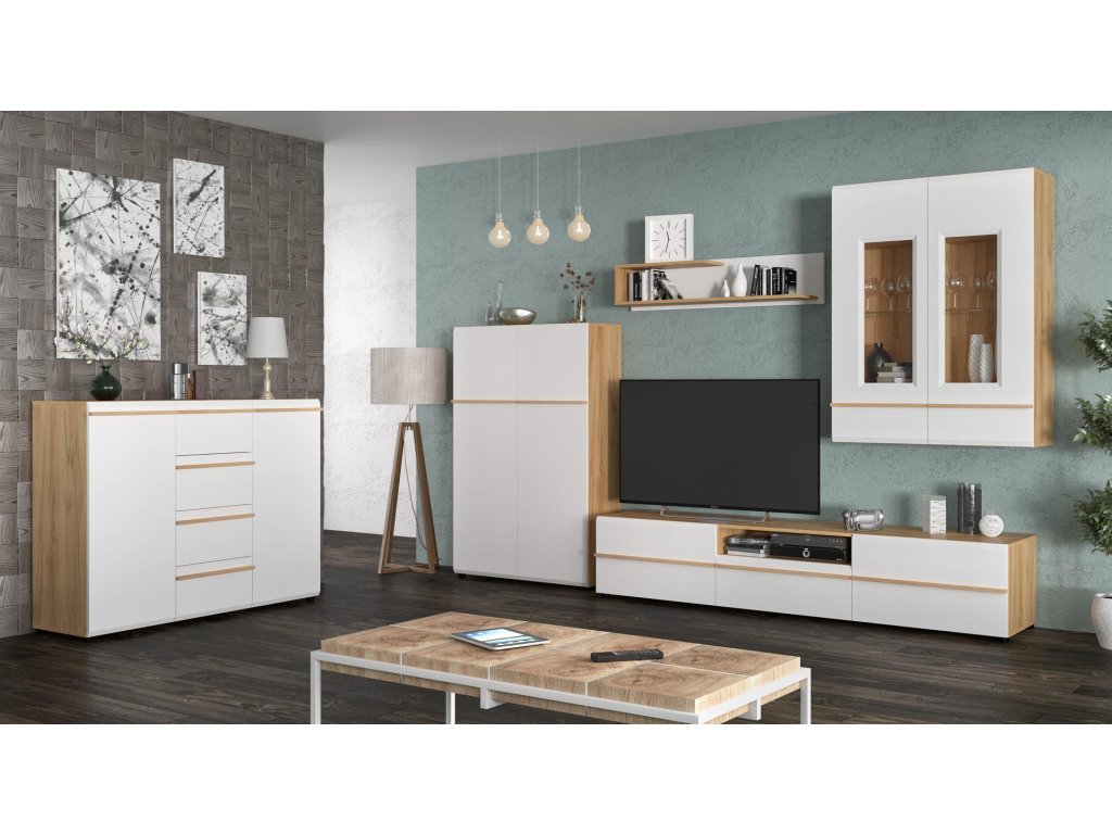 Obývací stěna ZETA jasan zlatý/bílá