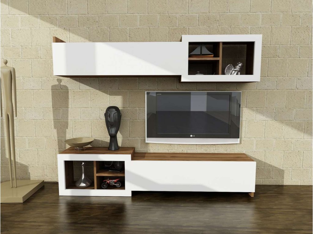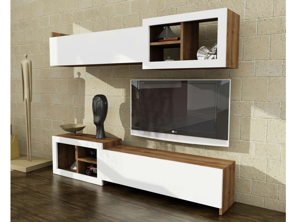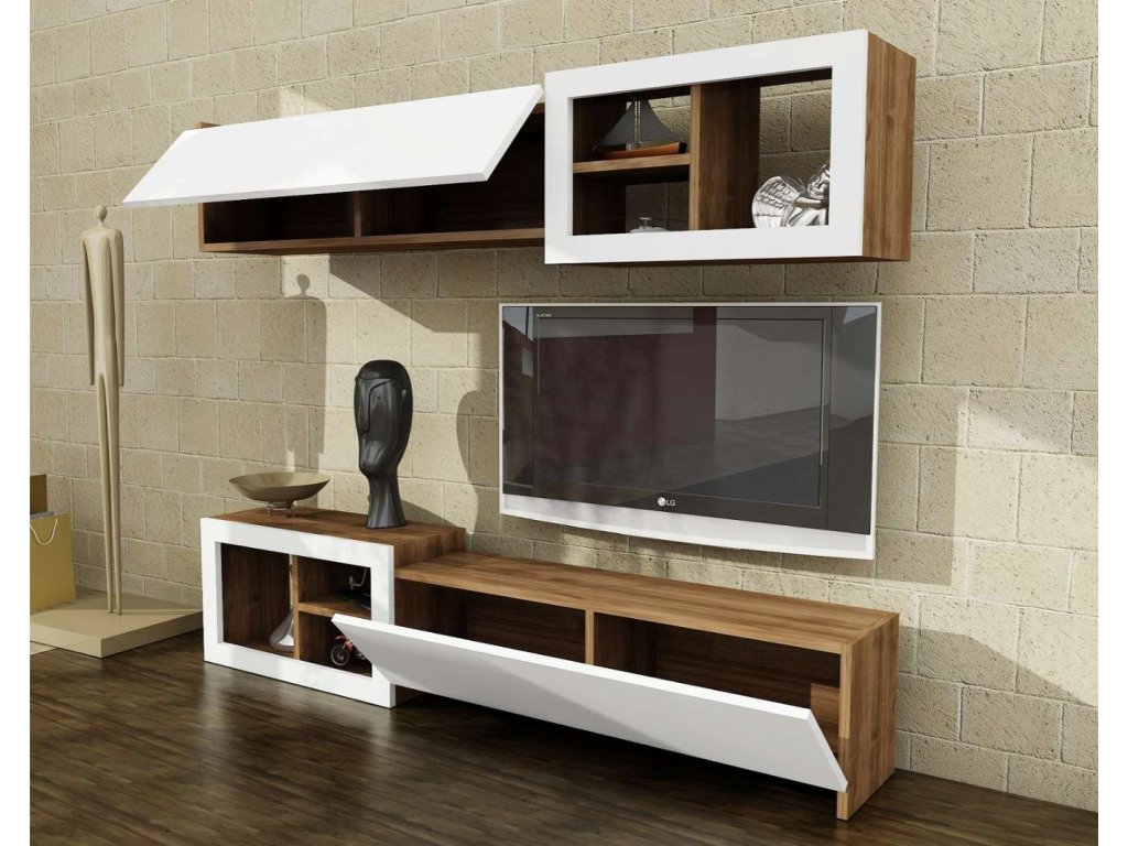 UBALDO obývací stěna, bílá/ořech
