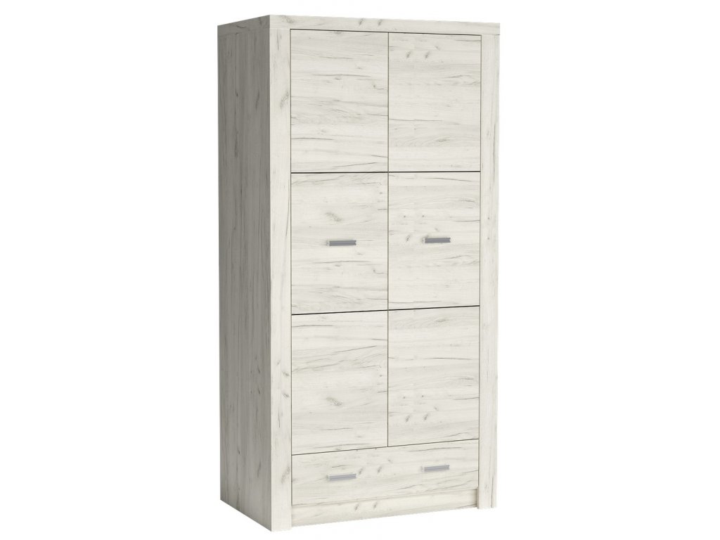 Šatní skříň ze sektorové řady INDIANAPOLIS. Skříň má 2 dveře a 1 zásuvku. Uvnitř skříně je prostor se šatní tyčí. Systém INDIANAPOLIS je exkluzivní kolekce navržena v moderním duchu. Celá řada se vyznačuje elegancí a jednoduchými tvary, které zaručují plné využití prostoru. Nábytek je vyroben z kvalitního lamina s ABS hrany ( 0,5-0,8 mm ). Barevné provedení jasan bílý. Možnost dokoupení 3 polic. Dodáváme v demontovaném stavu.Zusätzliche Parameter
