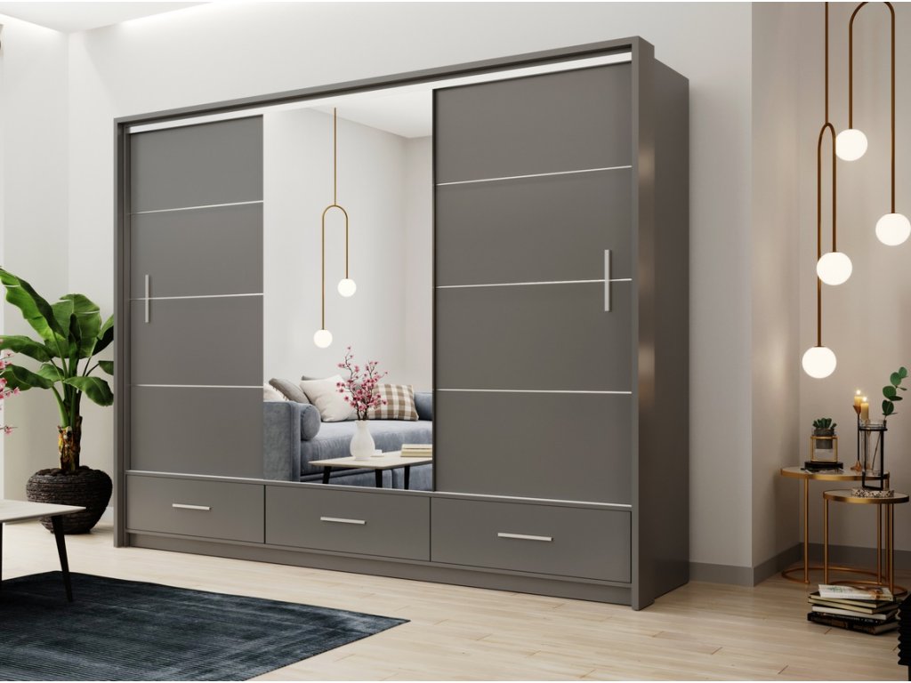 Šatní skříň MAURINO 250 grafit mat s osvětlením