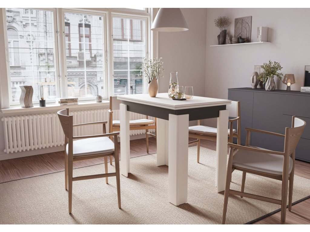 Jídelní stůl rozkládací MANZINI 90x60 cm bílá/antracit