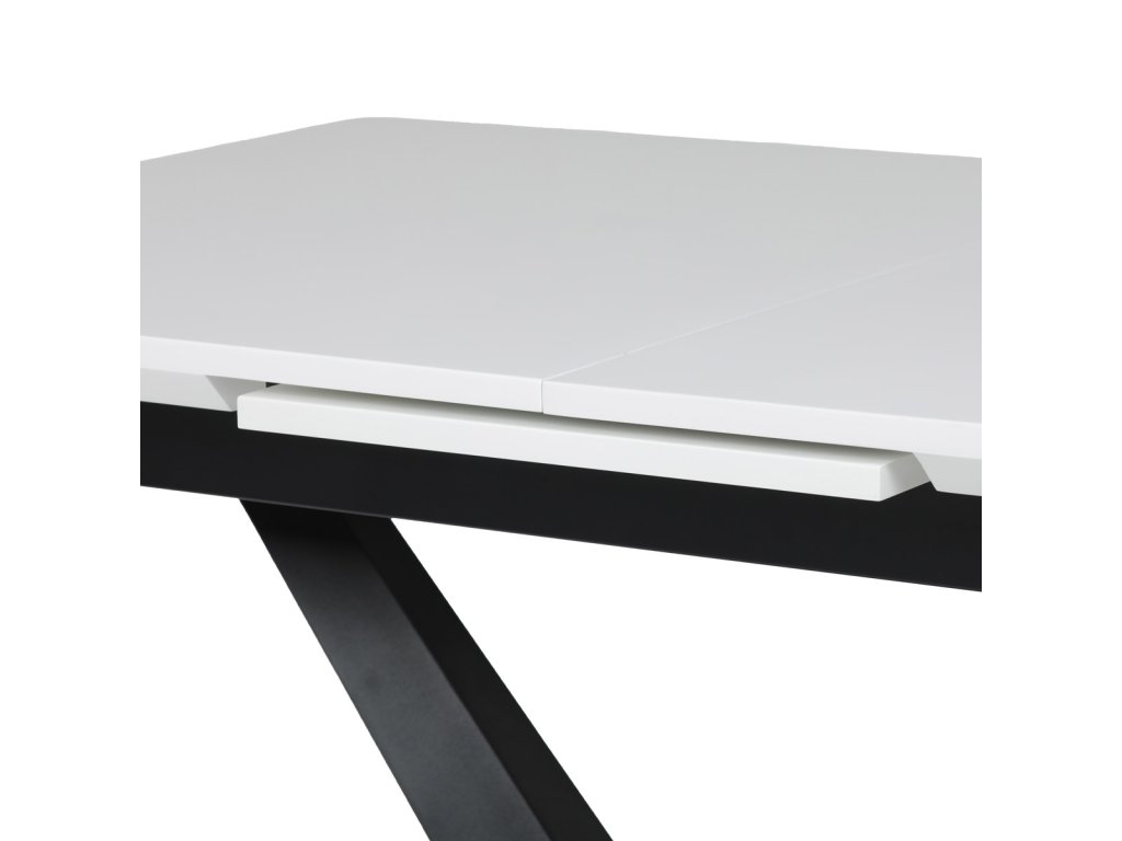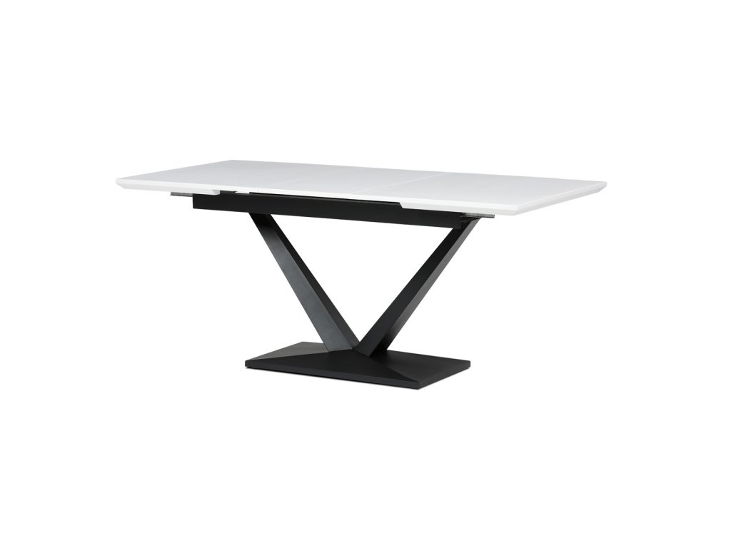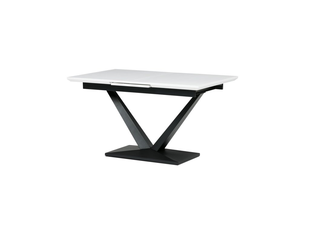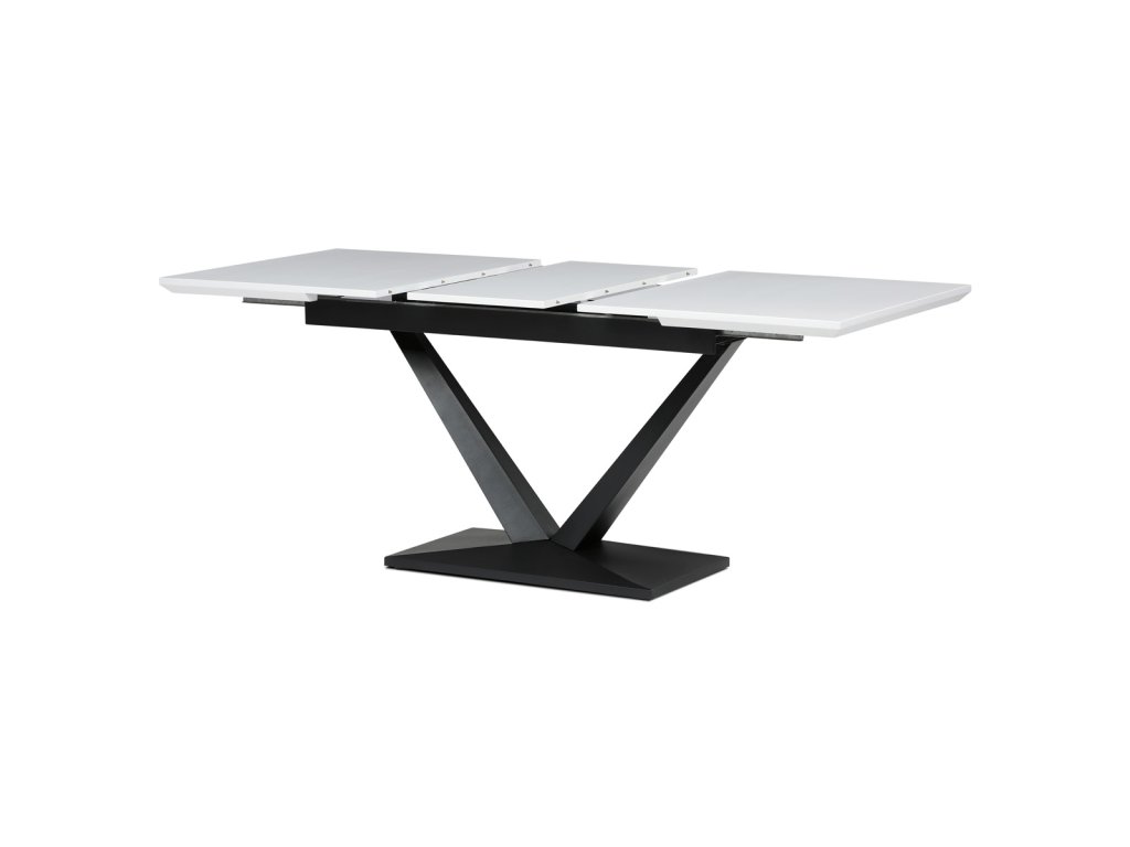 Stůl jídelní, 140+40x85, bílá matná MDF deska, černé kovové nohy.