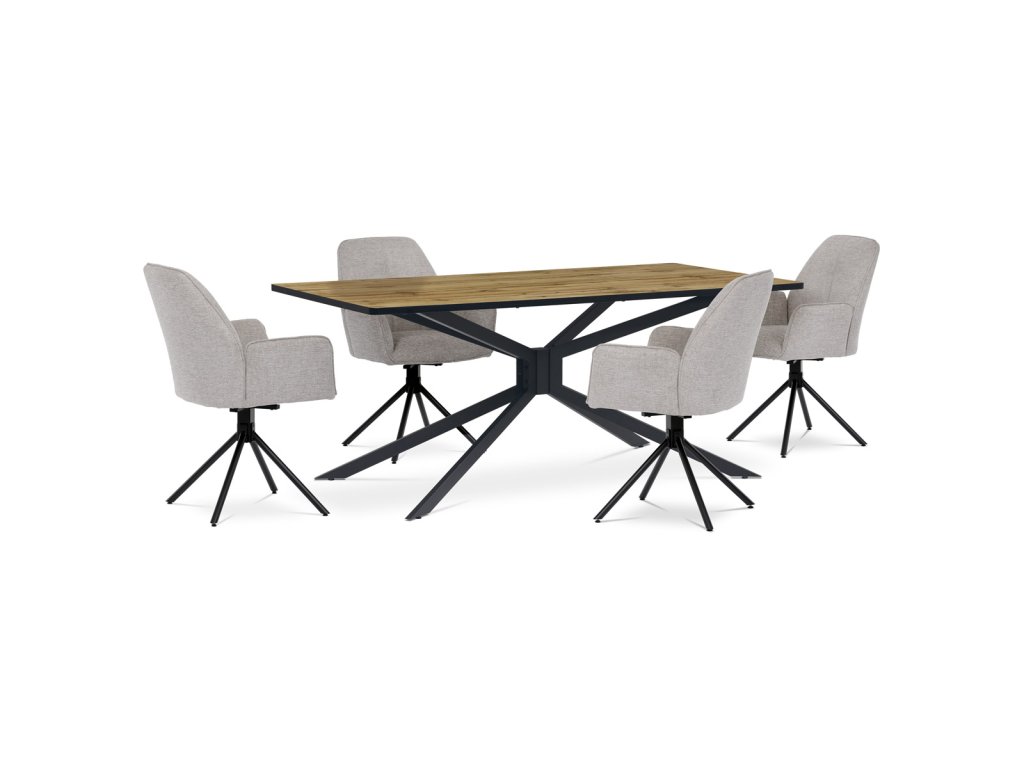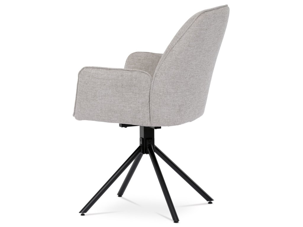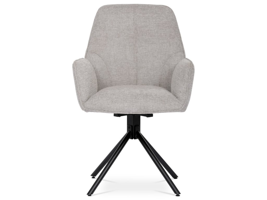 Jídelní židle krémová látka, područky, otočný mechanismus 180°, černý kov