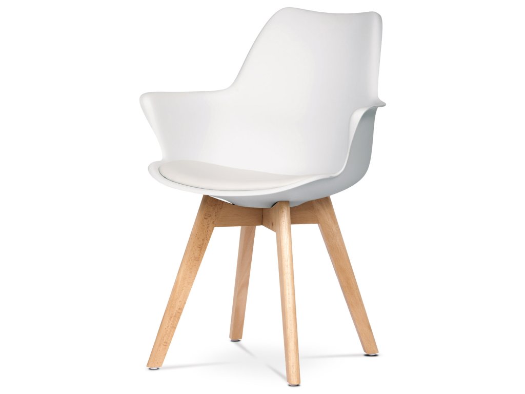 Židle jídelní, bílá plastová skořepina, sedák ekokůže, nohy masiv přírodní buk