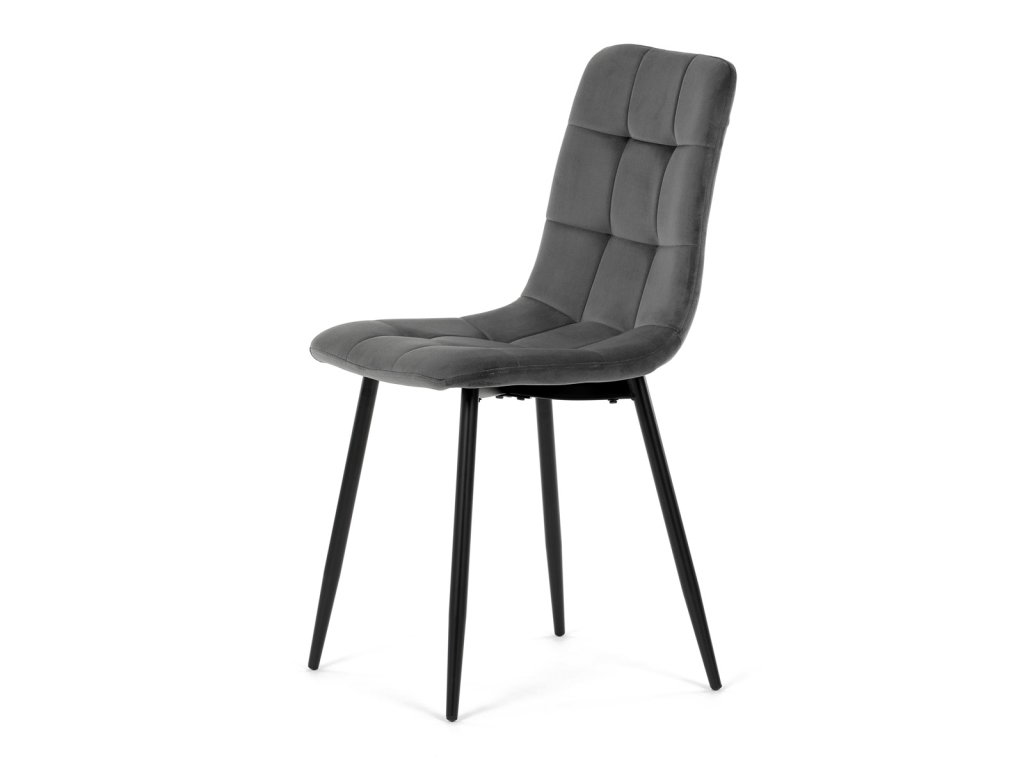 Židle jídelní, šedá sametová látka, nohy černý kov