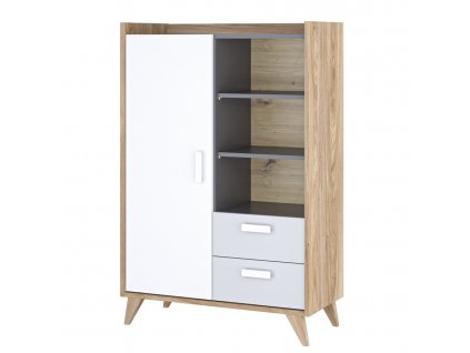 Regál MOYA 2S dub castello/šedá/bílá