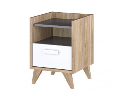 Noční stolek MOYA dub castello/šedá/bílá