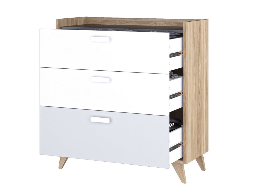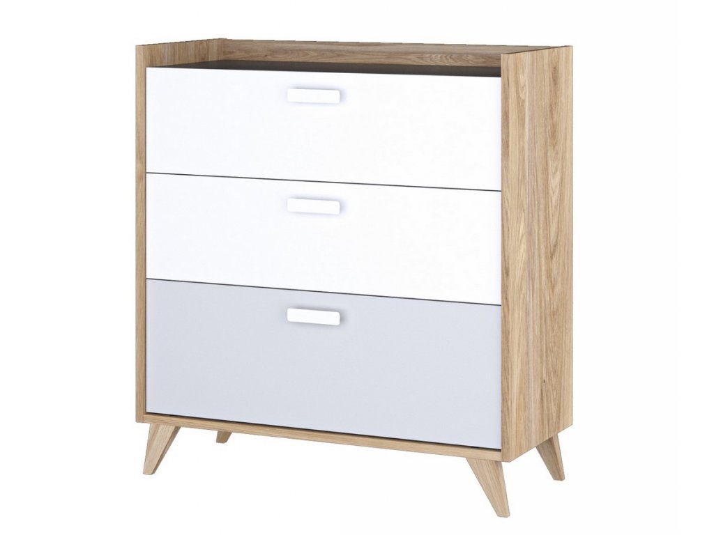 Komoda MOYA 3S dub castello/šedá/bílá