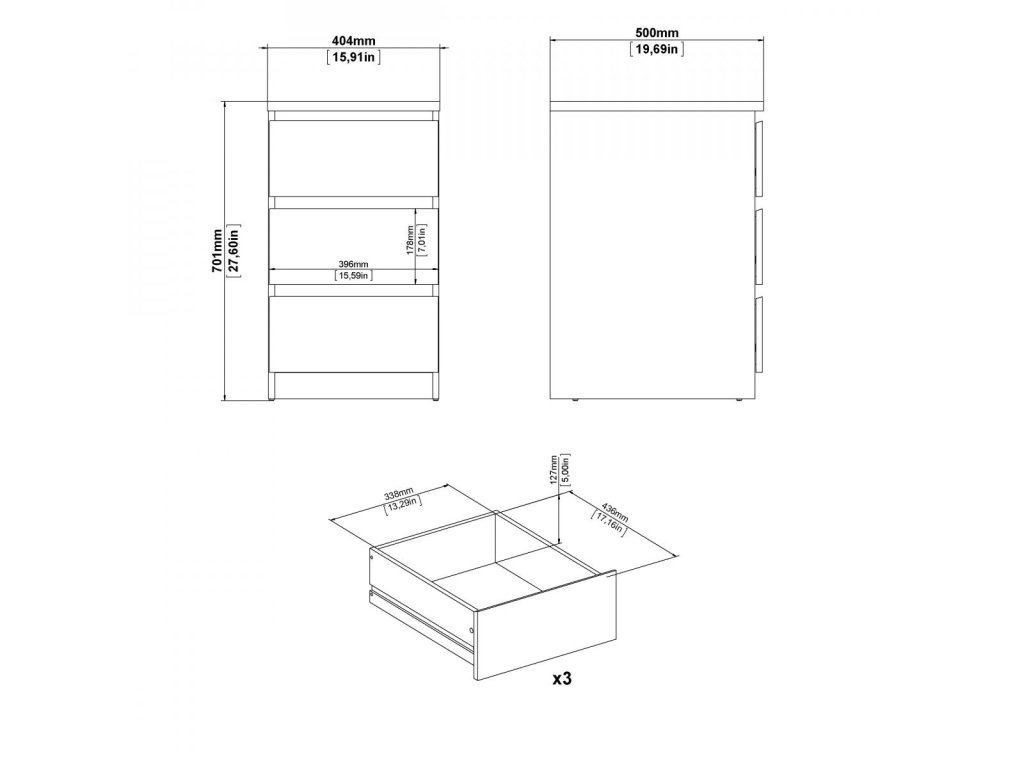 Komoda 3 zásuvky TORINO bílá, kovové úchytky
