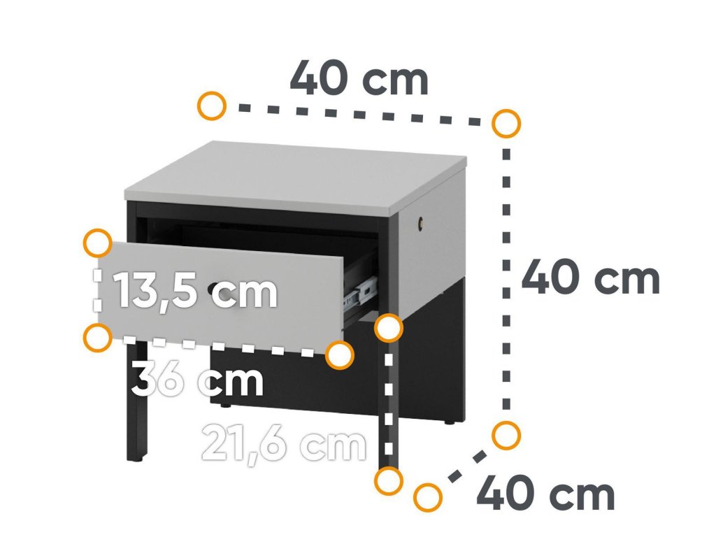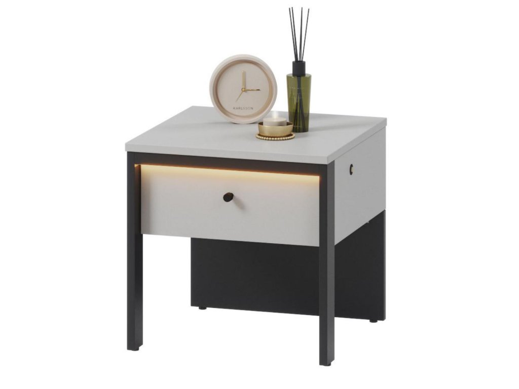 Noční stolek 1S s LED SAVONA barva šedá/černá