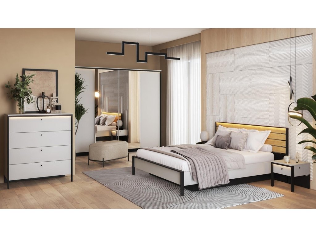 Komoda 4S s LED SAVONA barva šedá/černá