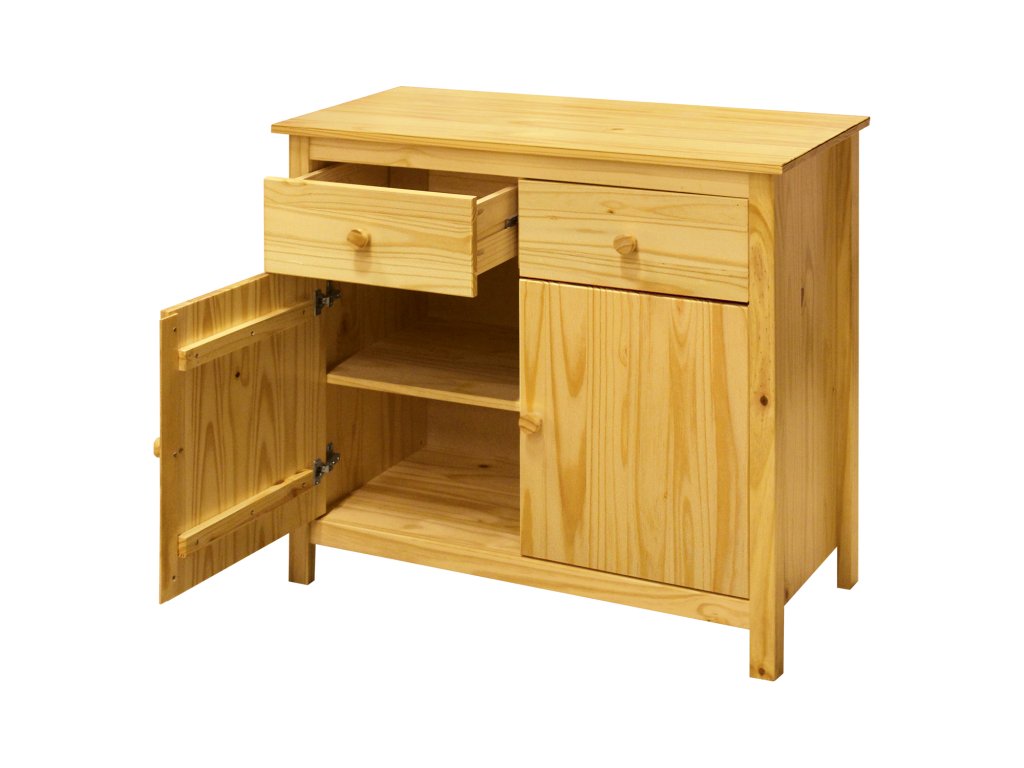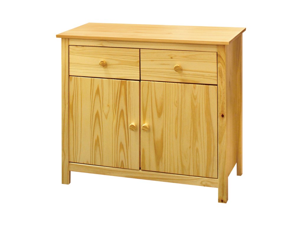 2 zásuvky s kovovými pojezdy, 2 plné dveře, 1 police