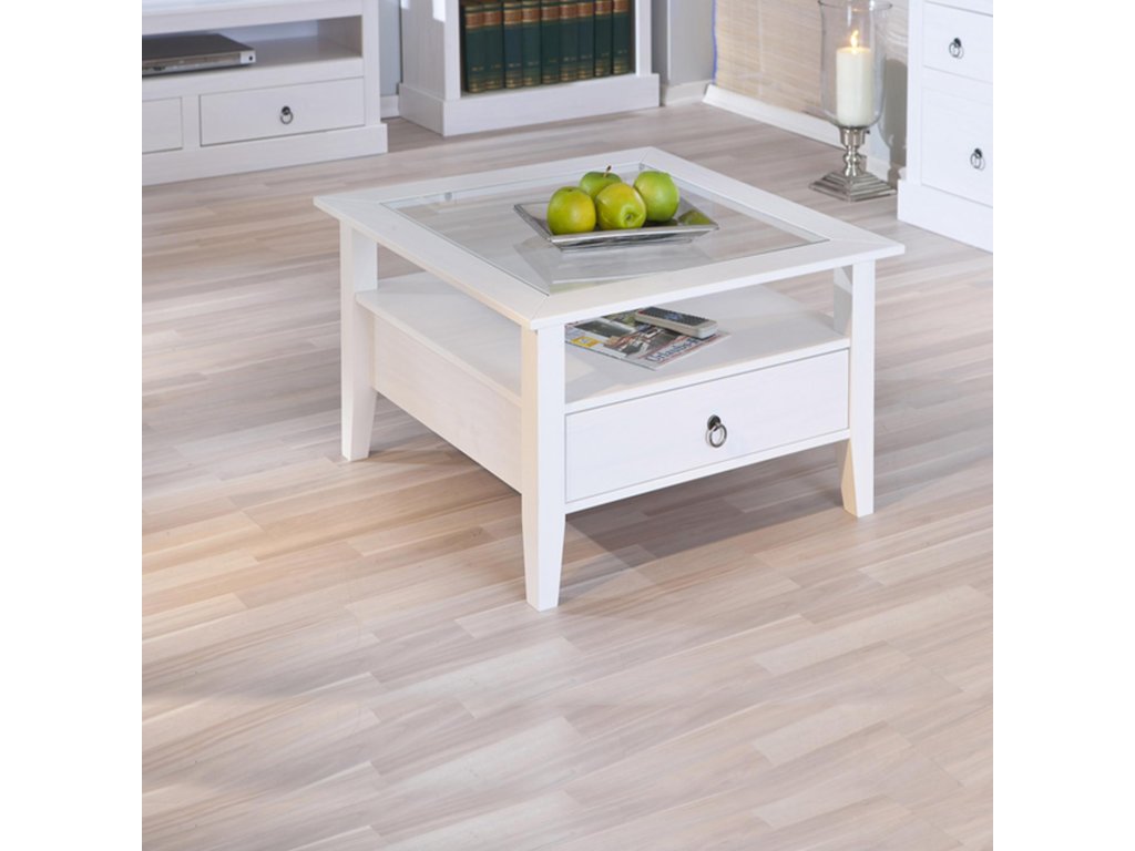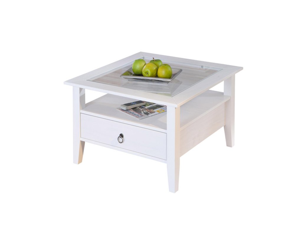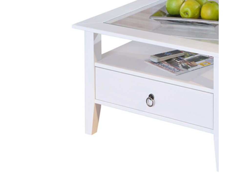 materiál masiv borovice, barevné provedení bílý lakhorní deska tvrzené sklo, 1 zásuvka, kovové úchytky
