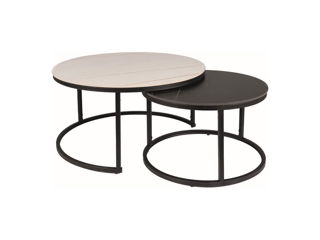 Set 2 ks stolků, MDF deska, dekor bílý mramor, kovová podnož, černý lak