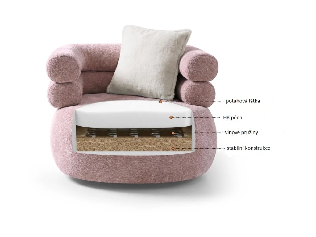Křeslo relaxační s podnožkou, růžový manšestr, černé kovové nohy