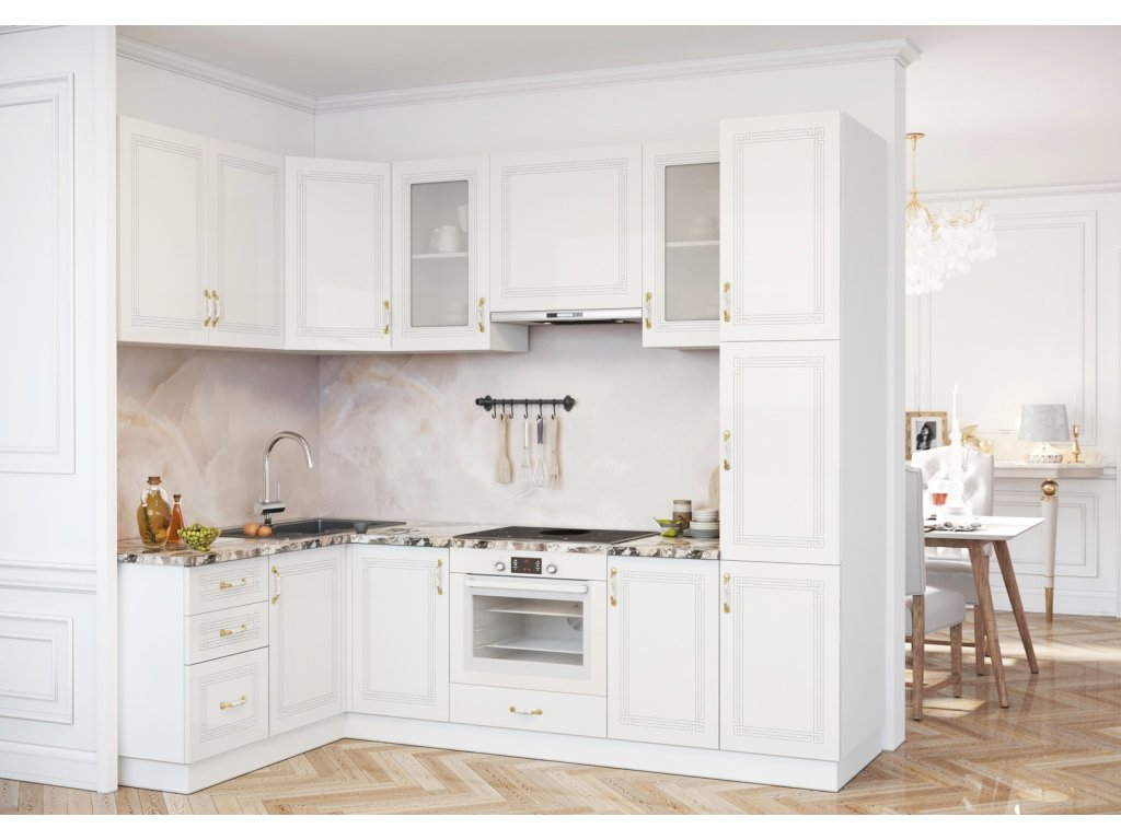 Kuchyně RIZAM rohová bílá/bílá lesk