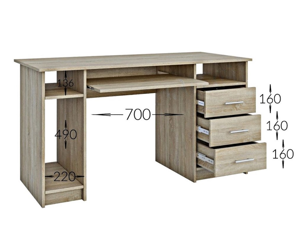 Pracovní stůl s velkou pracovní plochou a se zásuvkami, vyrobený z kvalitní LTD v barvě dub sonoma, se hodí do každé kanceláře, pracovny či dětského pokoje. Stůl je možné kombinovat s dalším nábytkem řady a vytvořit tak praktický pracovní prostor. Dodáváme v demontovaném stavu.Zusätzliche Parameter