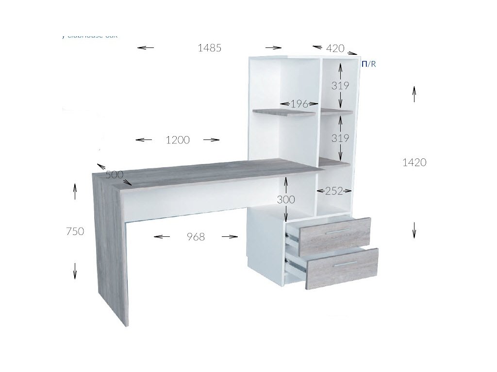 Pracovní stůl SHIMI pravý bílá/šedá