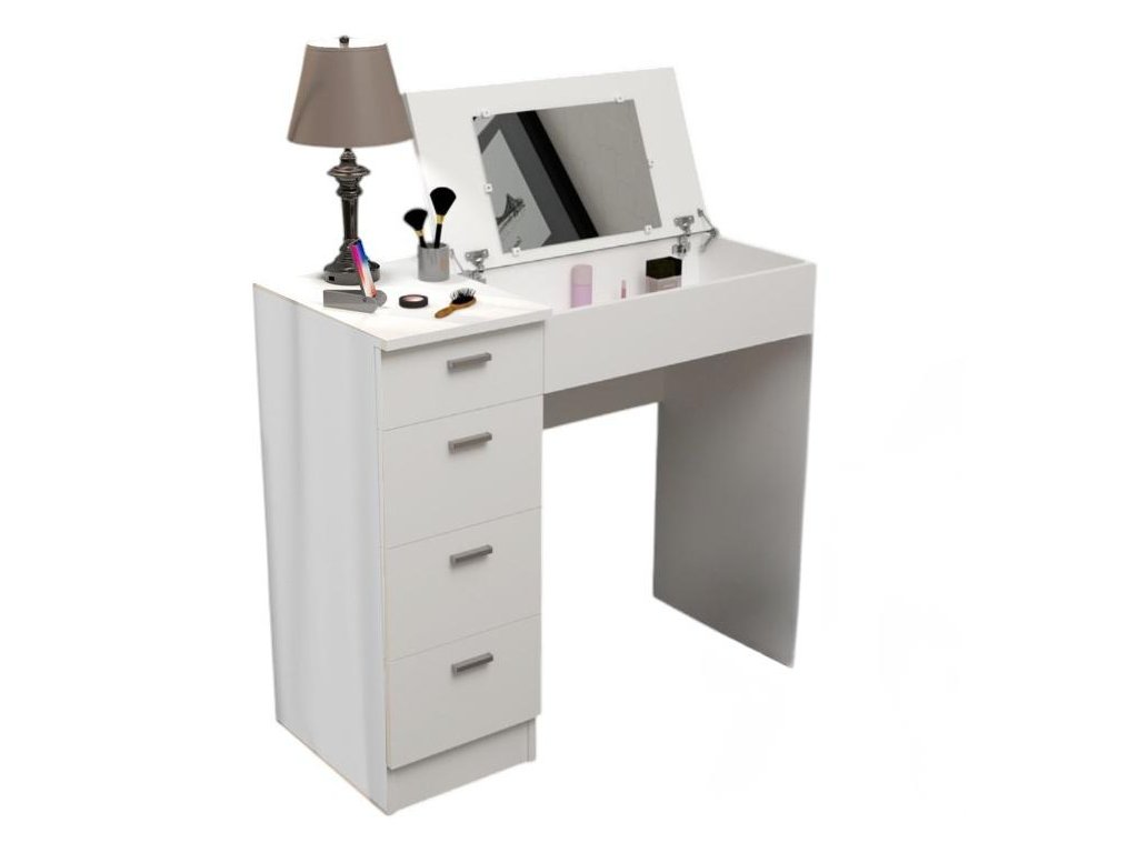 Praktický pracovní stůl, který lze snadno přeměnit na toaletní stolek. Pod pracovní deskou je umístěn ukládací prostor, do kterého můžete ukládat make-up nebo notebook. Stůl je vybaven čtyřmi praktickými zásuvkami. Korpus i dvířka stolku jsou vyrobeny z kvalitního LTD odolné proti oděru. Dvířka i korpus jsou v barvě bílá mat. Zrcadlo je v ceně stolku. Dodáváme v demontovaném stavu.Zusätzliche Parameter
