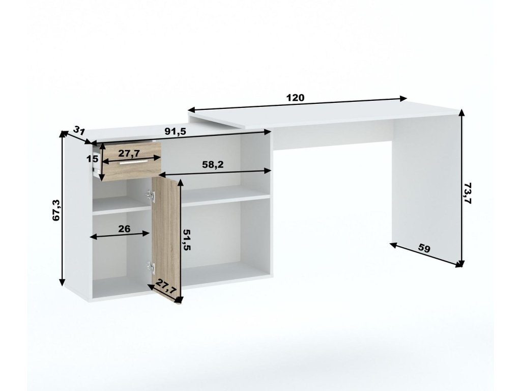 Psací stůl 1D1S SORIA bílá/dub sonoma