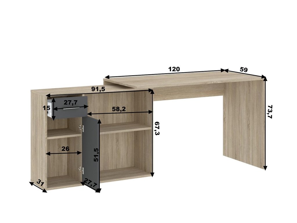 Psací stůl 1D1S SORIA dub sonoma/grafit
