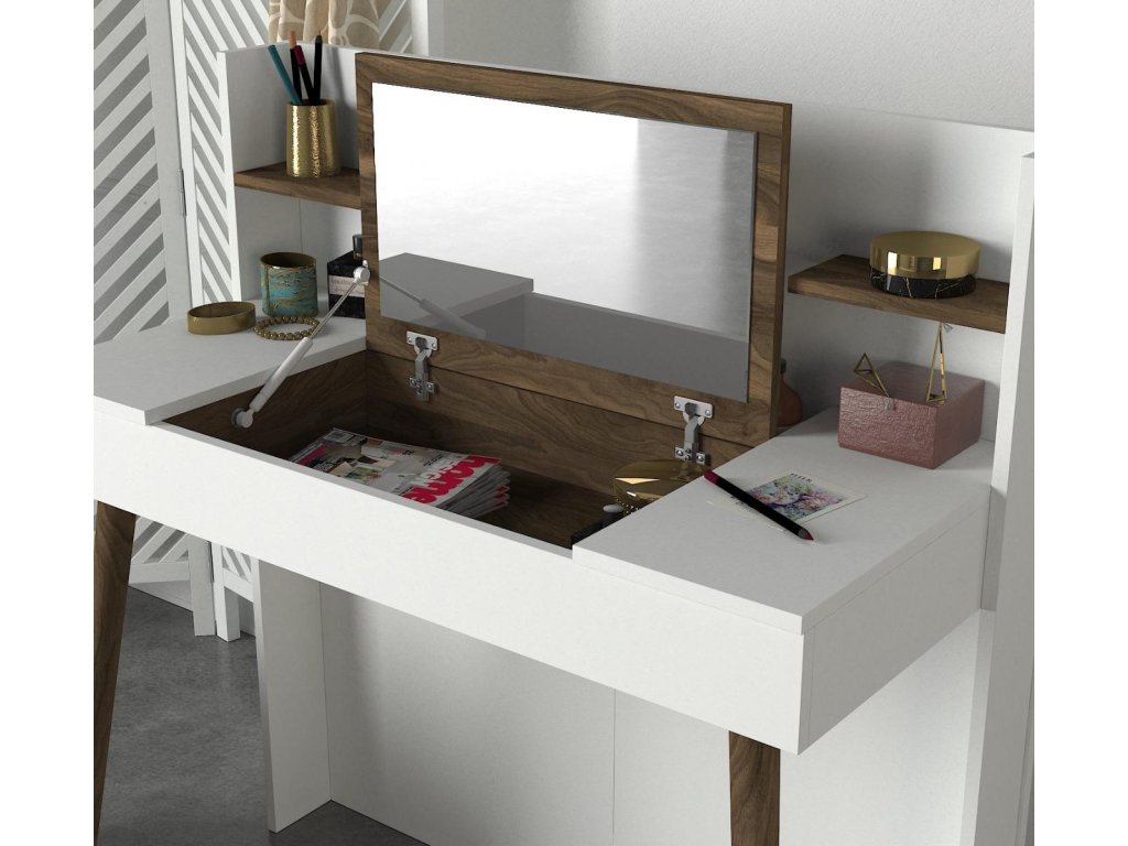 Toaletní stolek s panelem a zrcadlem PEDRO bílá/ořech