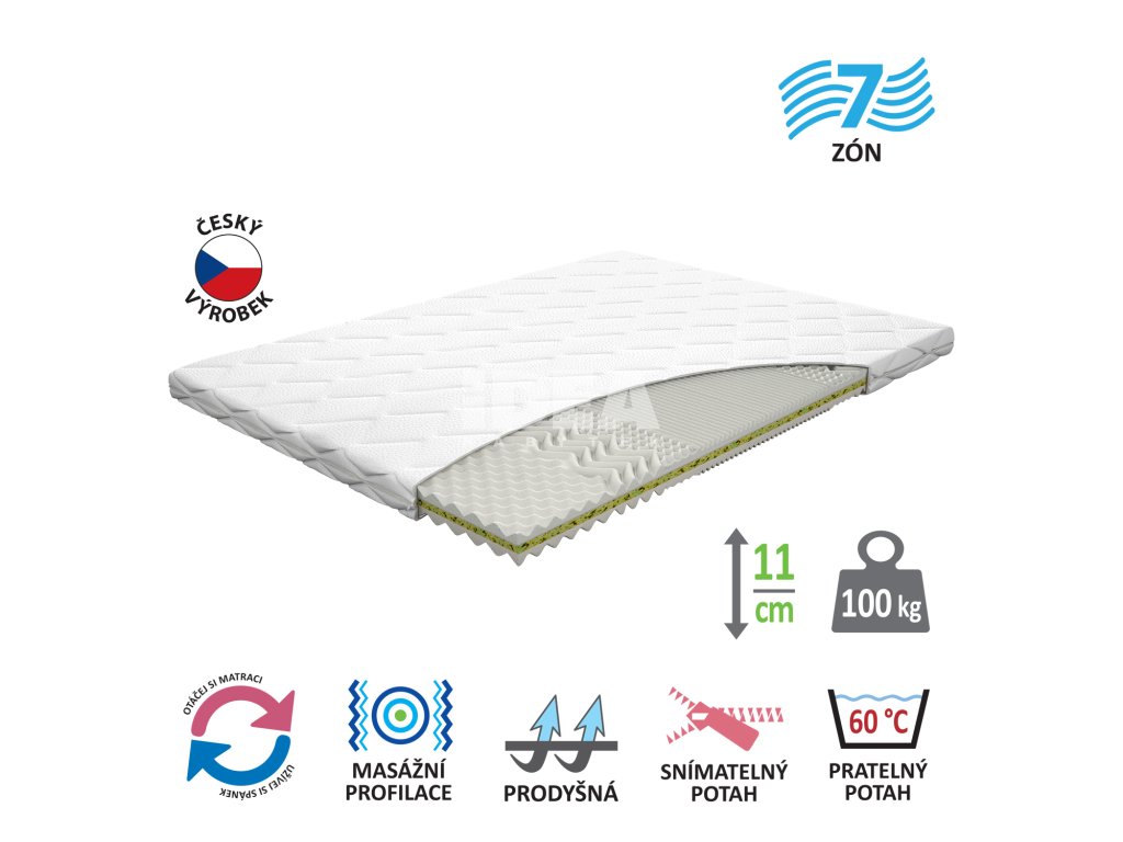 Válenda s čely s matrací uloženou na desce,pevném nebo polohovacím lamelovém roštu s odvětraným...