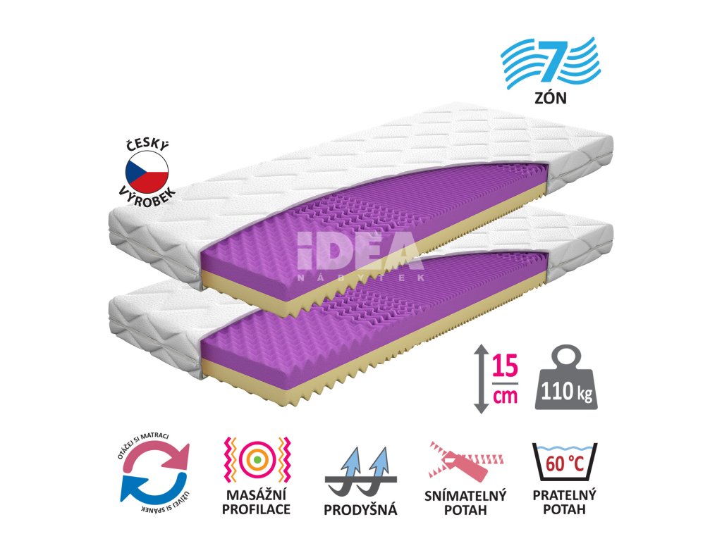anatomická zónová masážní profilace – 7 zón na obou stranách pro uvolnění a relaxaci celého těla, maximální vzdušnost, ideální ortopedické vlastnosti