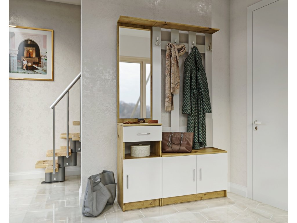 Předsíňová stěna MASHENKA bilá/dub artisan