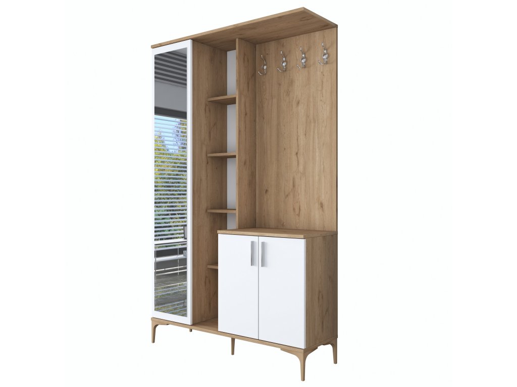 RASURA předsíňová stěna se zrcadlem, bílá/ořech