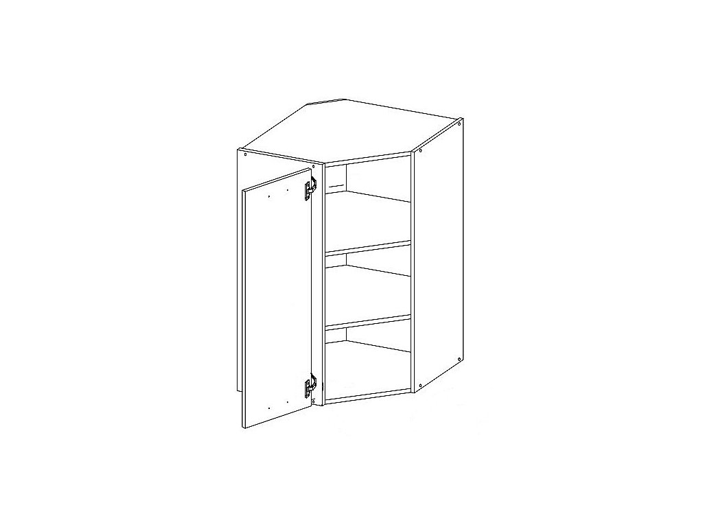 Horní skříňka rohová GREY vyrobená z kvalitního lamina a MDF. Korpus je v barvě šedá a dvířka v barvě grey šedá v lesku. Rozměry skříňky - šířka 59 x 59 cm, výška 71,5 cm, hloubka 31 cm. Úchyty jsou z kovu. Dvířka mají levé otvírání. V naší nabídce naleznete další výběr skříněk k sestavení celé kuchyně.Zusätzliche Parameter