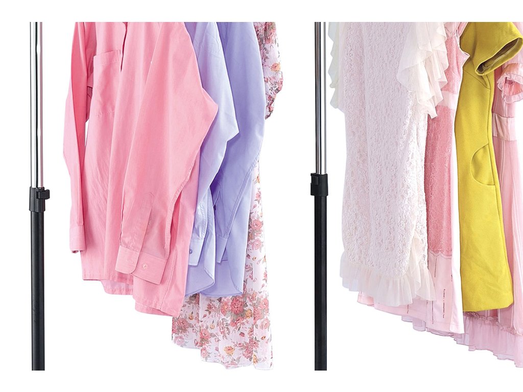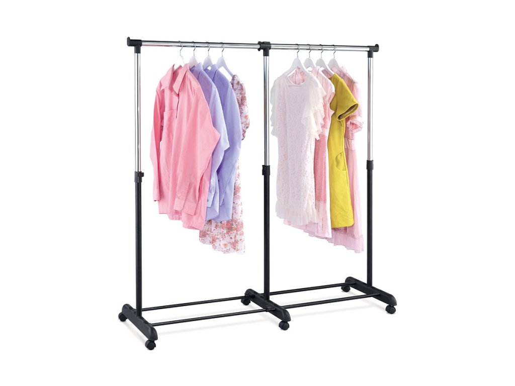Praktický stojan na šaty, který lze rozšířit ze základní šířky 94 cm až na šířku 160 cm. Výškově lze nastavit od 94 cm do 167 cm.