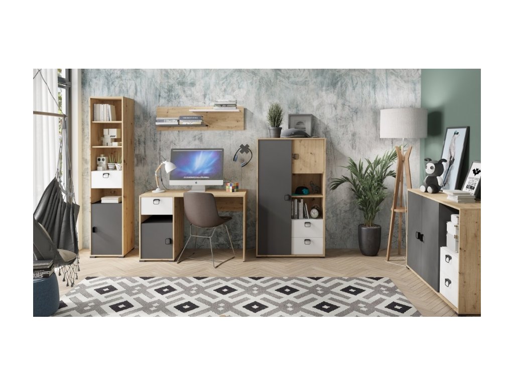 Psací stůl Kelvin je vyroben z vysoce kvalitního lamina. Tento psací stůl je skvělým doplňkem do dětského, nebo studentského pokoje, ale také do kanceláře. Nabízí spoustu úložného prostoru a je dodáván v demontu. Navíc je dostupný v barevné varianty - bílá, grafit a dub artisan. Stačí se podívat na fotografie pokojů s prvky ze systému Kelvin a můžete se inspirovat!