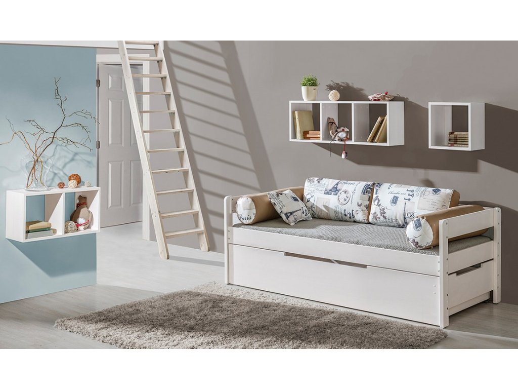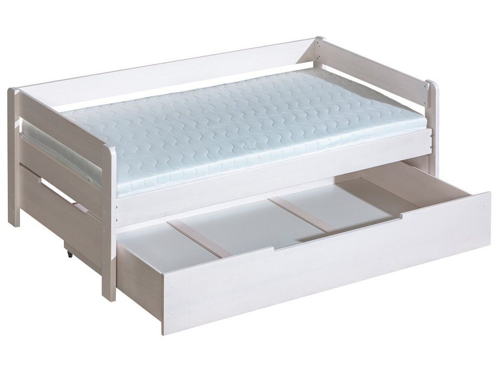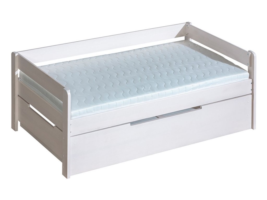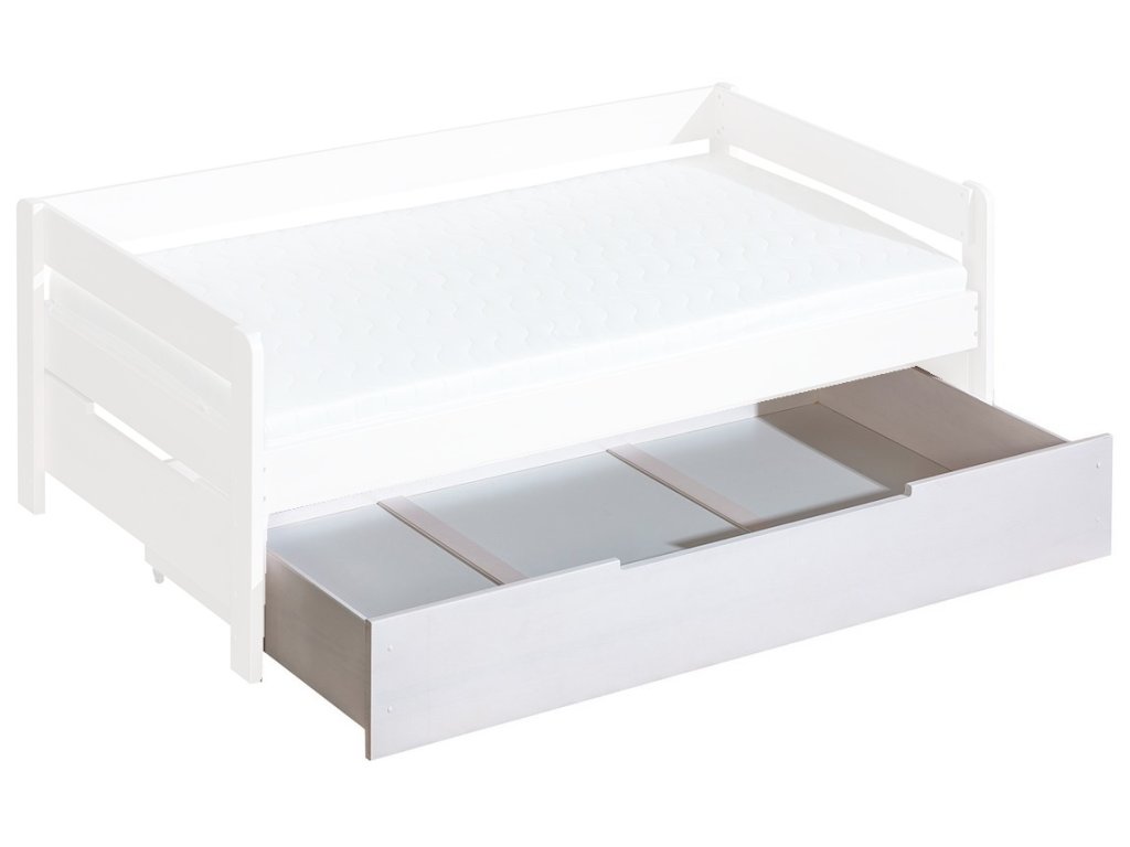 Zásuvka pod dětskou postel BORYS B2 k posteli BORYS B1 vhodná do dětského i studentského pokoje je vyrobena z masivního borovicového dřeva. Na výběr z několika barevných provedení: borovice natural, borovice s mořením v bílé barvě nebo borovice s mořením v barvě ořech. Postel BORYS B1 je možno uspořádat ve dvou verzích. V jedné verzi můžeme zvolit zásuvku B2, kde najdeme dostatečně velký úložný prostor, nebo verzi druhou se zásuvkou B3, kde součástí je jak přistýlka, tak i úložný prostor, který se otevírá vyklopením spodní postele. Uvedená cena v sobě zahrnuje rošty bez matrace, tu je však možné doobjednat. Rozměry vrchní matrace 90 x 200 cm, spodní může být jen PUR matrace ( výška max. 8 cm ) - 197 x 90 cm. Dodáváme v demontovaném stavu.