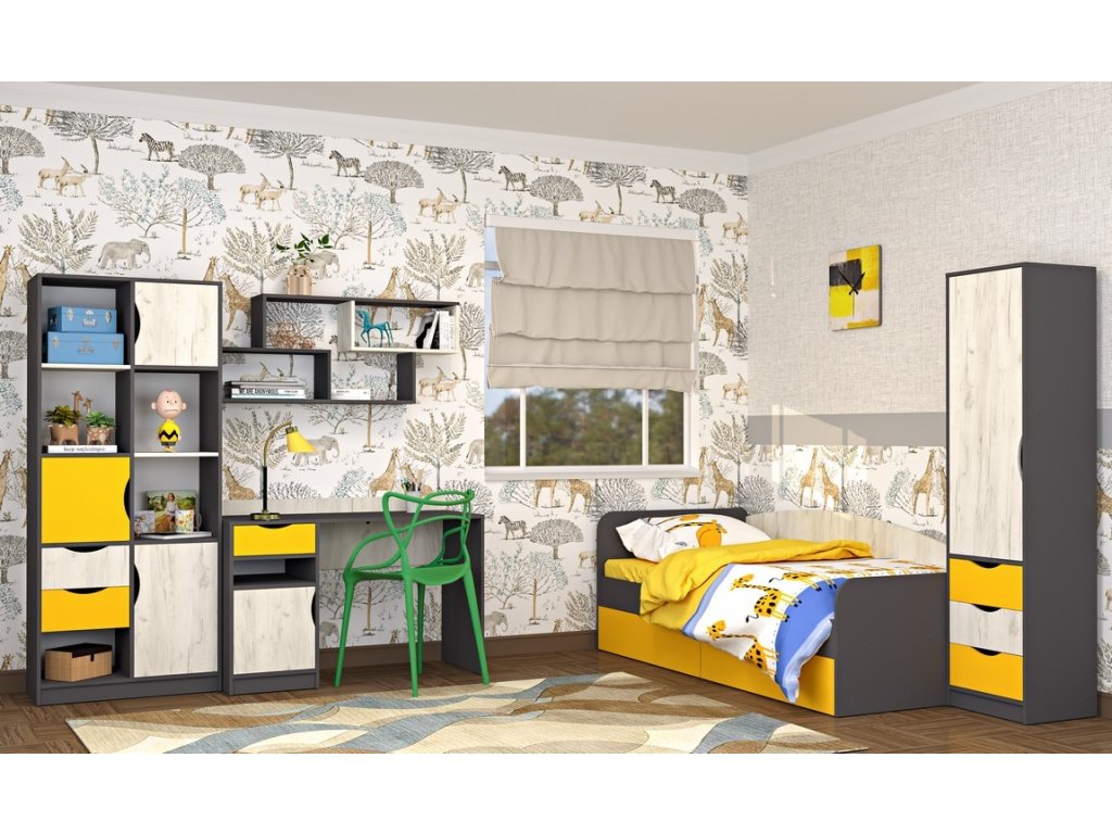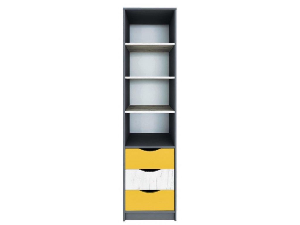 Regál 3S DISNEY dub kraft bílý/šedý grafit/žlutá