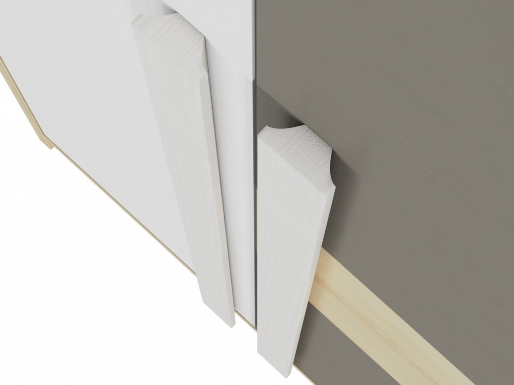 Sestava do dětského pokoje v moderním provedení. Korpus je vyroben z kvalitní desky LTD hraněné ABS páskou v barvě buk fjord, dvířka jsou vyrobeny z desky LTD v kombinaci barev buk fjord/bílá/šedá. Sestava se skládá z těchto položek (Š x V x H cm) - šatní skříň (80 x 199 x 55 cm), regál se zásuvkami (55 x 199 x 40 cm) a pracovní stůl (119 x 79 x 55 cm). Úchyty jsou dřevěné bílé. Dodáváme v demontovaném stavu.Doplňkové parametry