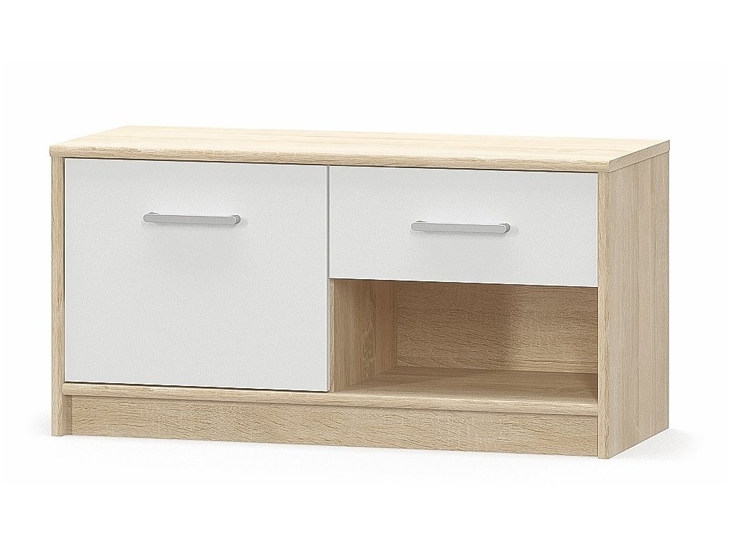 Televizní stolek ze sektorového nábytku v moderním provedení vyroben z kvalitní LTD desky v barevné kombinaci dub sonoma / bílá mat. Stolek má 1 dvířka, polici a 1 praktickou zásuvku. Nabídka komponentů této sektorové řady umožňuje sestavit si nábytek do obývacího, dětského nebo studentského pokoje dle vlastních představ. Dodáváme v demontovaném stavu.Doplňkové parametry