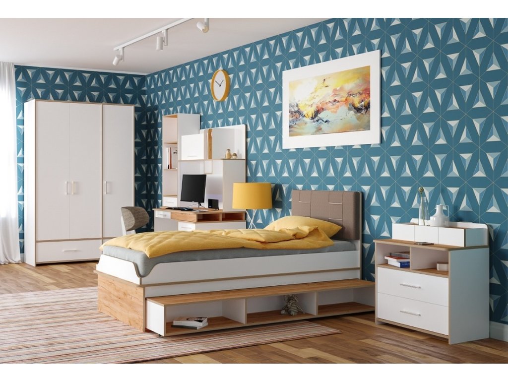 Postel 90 WOODY bílá/dub kraft zlatý