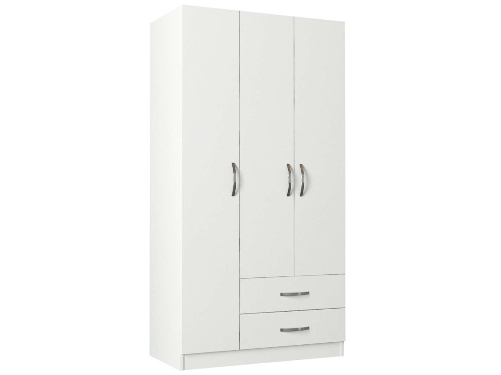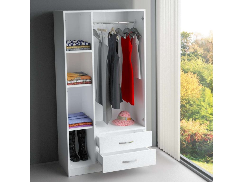 Šatní skříň vyniká svým skandinávským designem v bílé barvě, který dodá vaší ložnici svěží a moderní vzhled. Praktické vnitřní uspořádání s jednou šatní tyčí, dvěma zásuvkami a třemi policemi nabízí dostatek úložného prostoru pro vaše oblečení a další předměty.