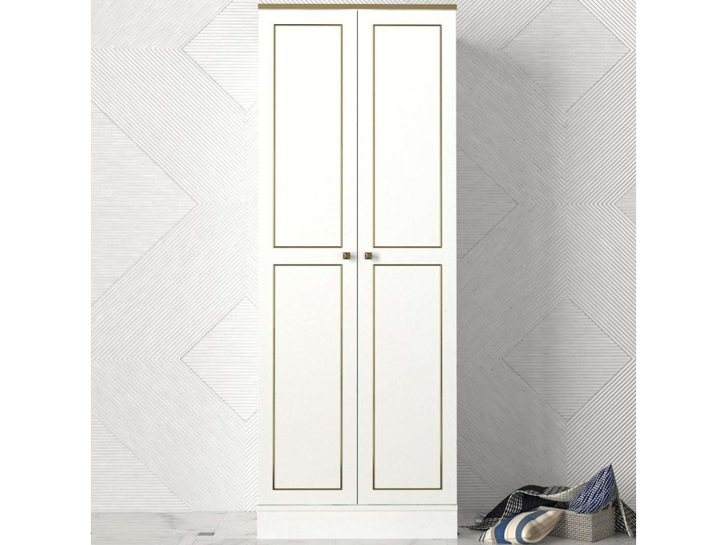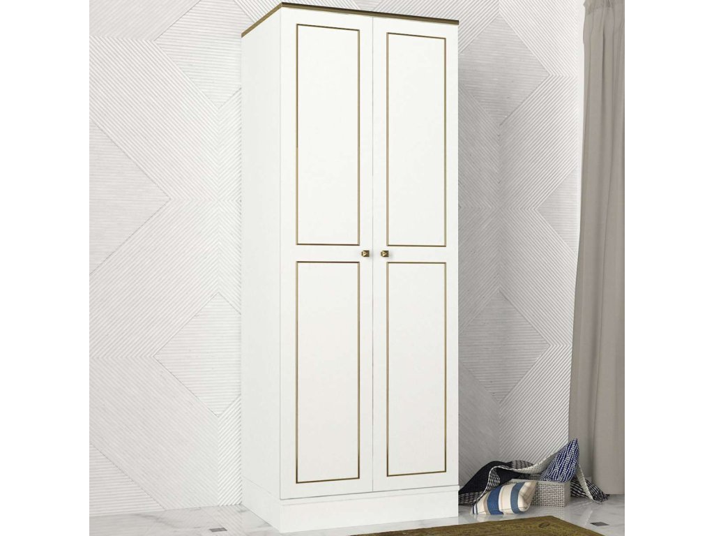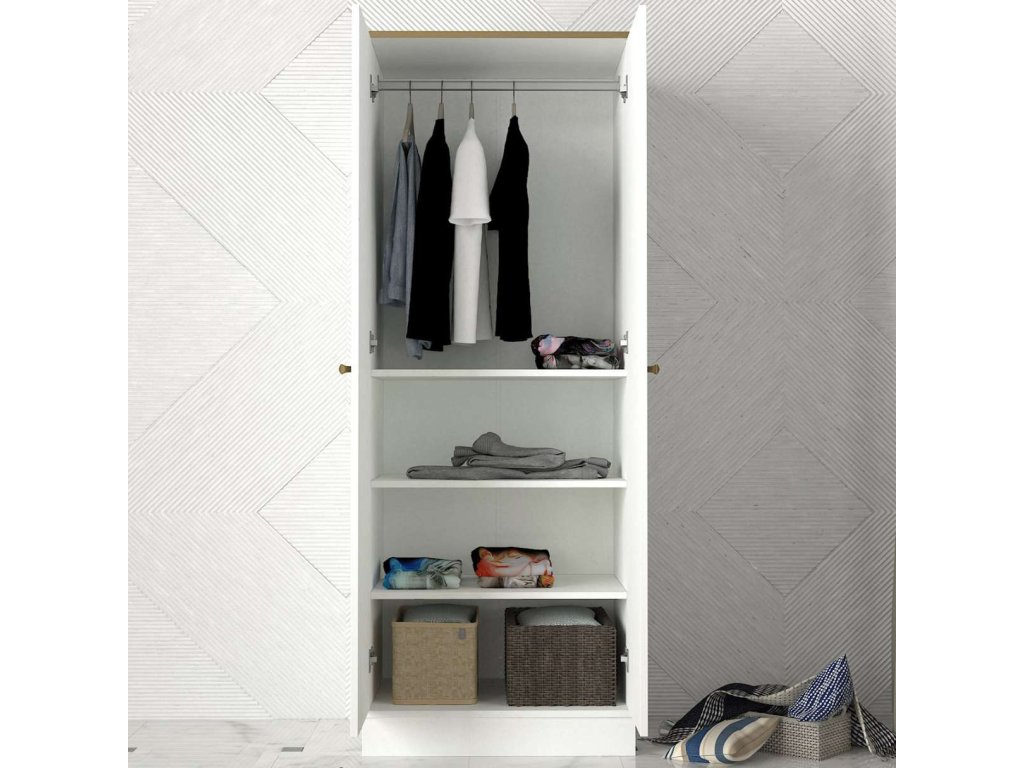Šatní skříň vyniká svým čistým a moderním designem v bílé barvě, který dodá vaší ložnici svěží a elegantní vzhled. Praktické vnitřní uspořádání s jednou šatní tyčí a třemi policemi nabízí dostatek úložného prostoru pro vaše oblečení a další předměty.