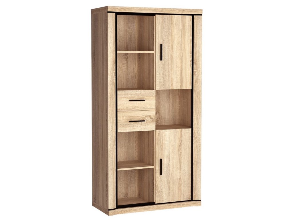 Kombinovaný regál ze sektorové řady, který má dvě zásuvky, dvoje dvířka a poličky. Má zajímavé provedení v podobě netradičně vyřezávaných vrchních a spodních desek. Systém je exkluzivní kolekce navržena v moderním duchu. Celá řada se vyznačuje masivním vzhledem a jednoduchými tvary. Nábytek je vyroben z kvalitního LTD s lištami z MDF, součástí nábytku jsou desky 48 mm, vše opatřeno ABS páskou. Barevné provedení - dub sonoma. Má široký výběr komponentů, díky kterým lze vybavit nejen obývací pokoj, ale i jídelnu nebo kancelář. Možnost dokoupeni 3 polic. Dodáváme v demontovaném stavu.Doplňkové parametry